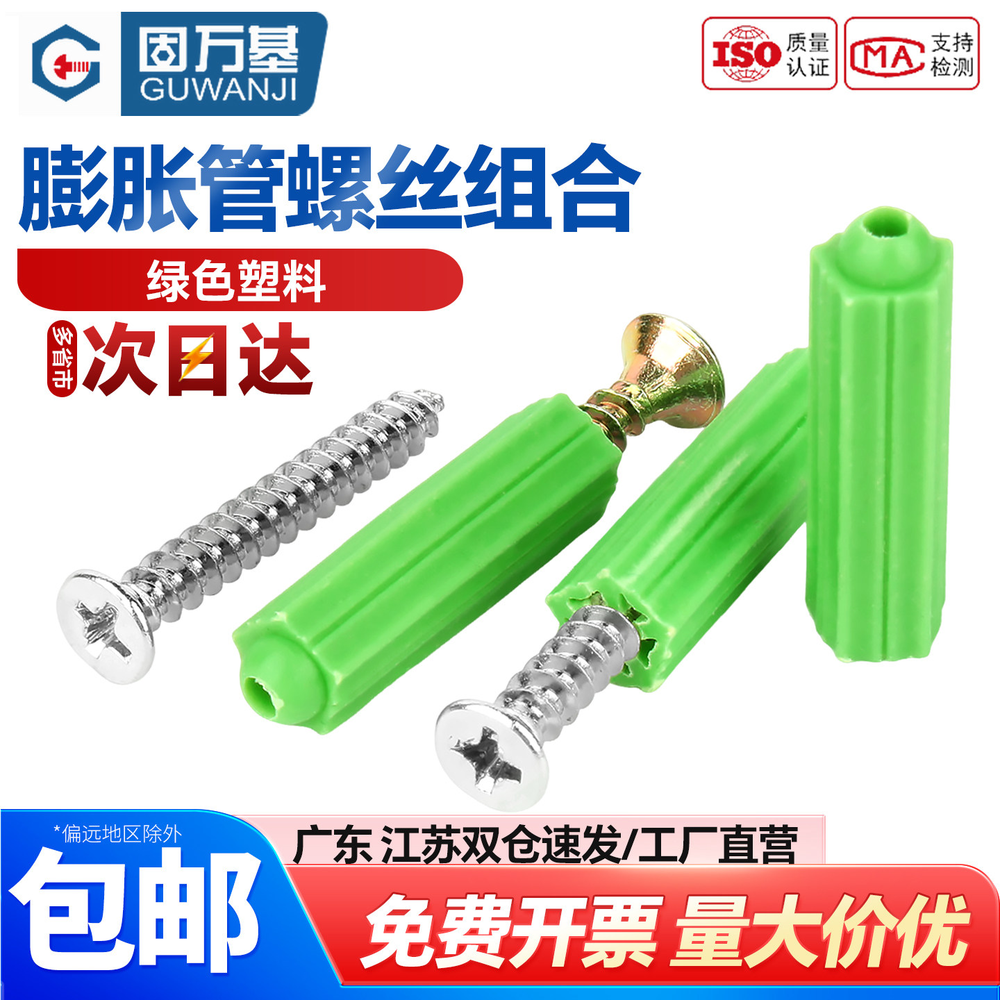 塑料膨胀螺丝胶塞膨胀管内膨胀螺栓绿色尼龙胶粒墙塞涨塞M6mm8mm - 固万基五金科技