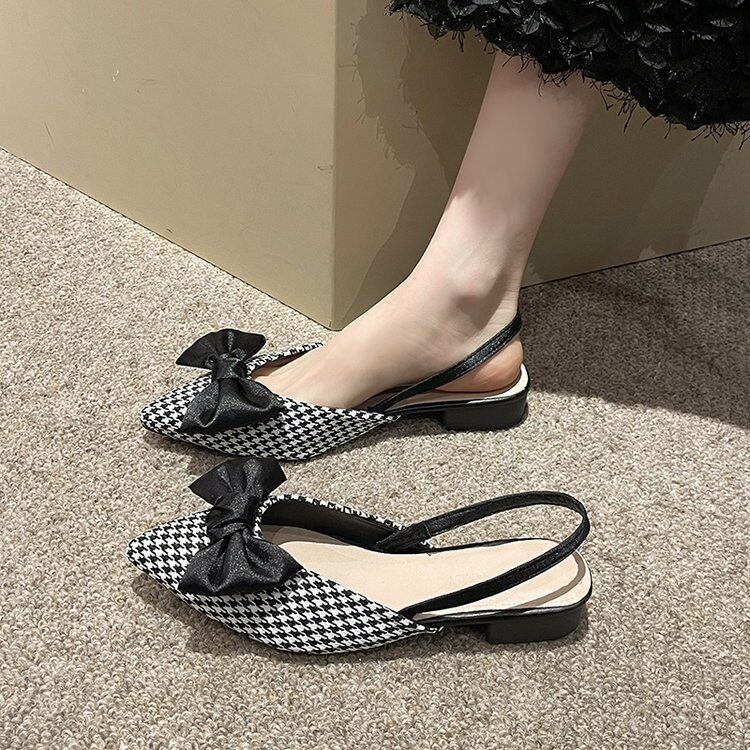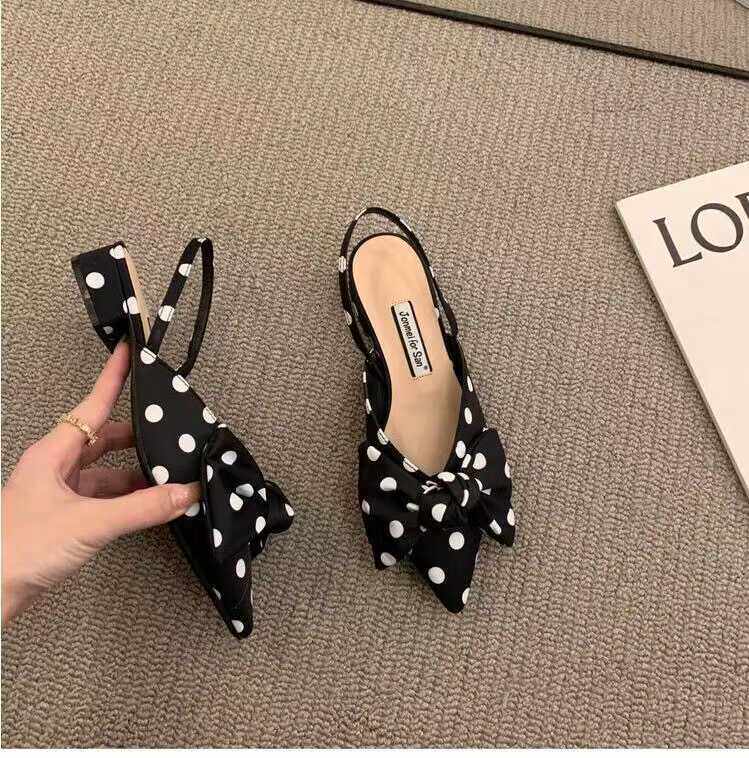 欧货2024夏季新款凉鞋女法式尖头粗跟包头后绊带蝴蝶结配裙子单鞋 - 佳琦原创女鞋