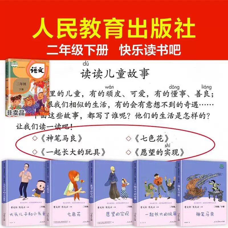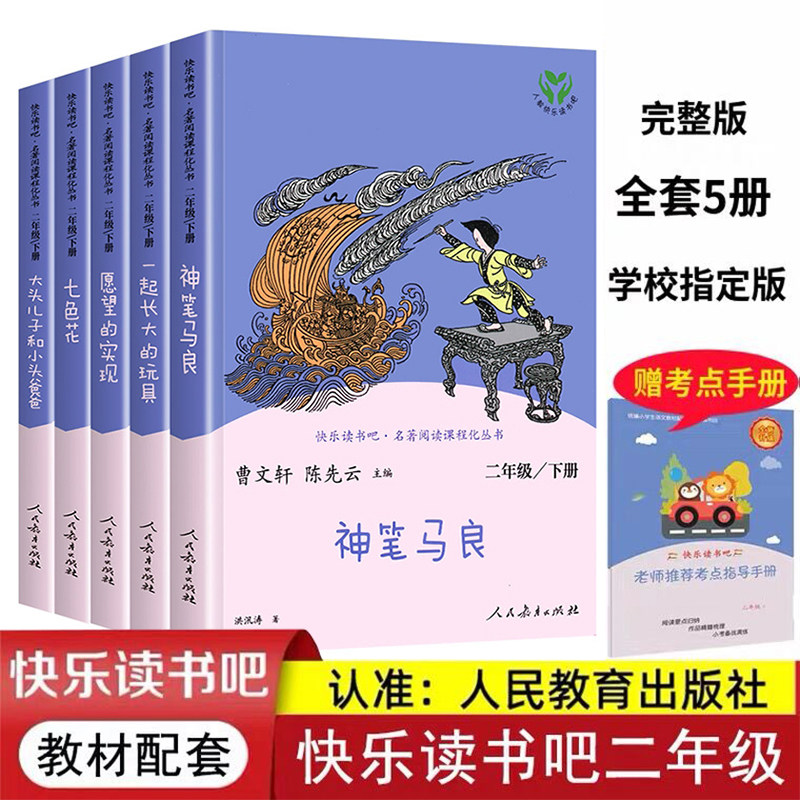人教版快乐读书吧二年级下册必读课外书全套5本正版神笔马良七色花一起长大的玩具愿望的实现大头儿子和小头爸爸语文人民教育出社 - 途瑶旗舰店