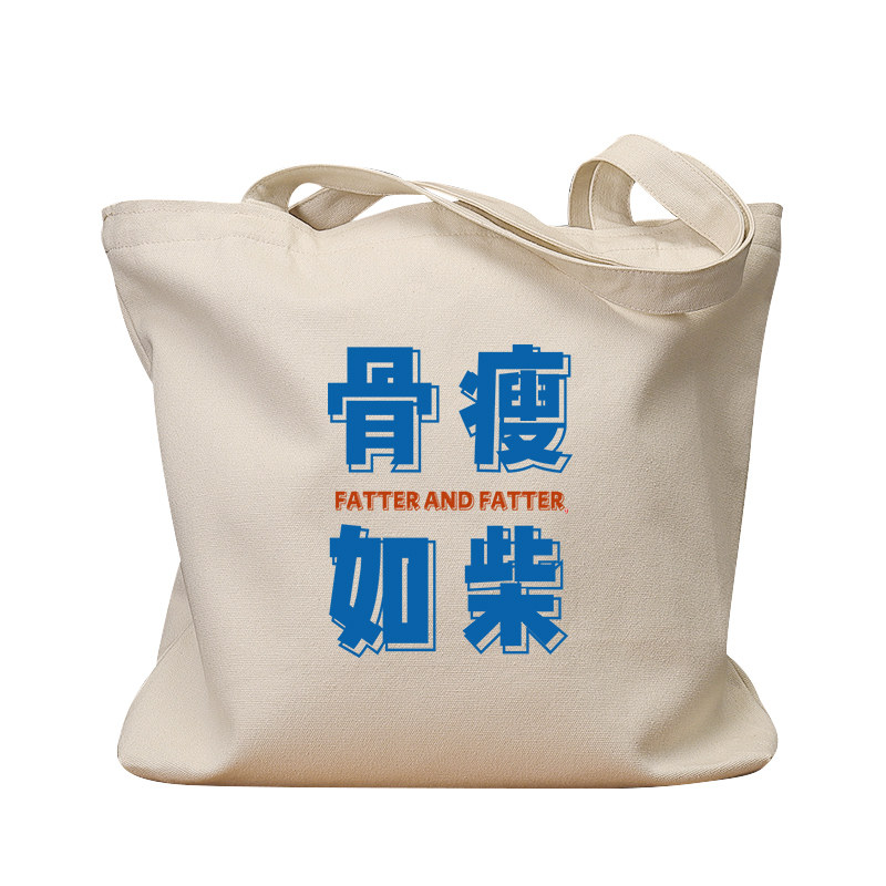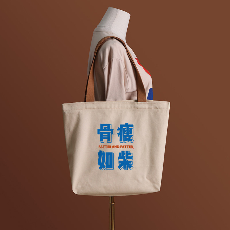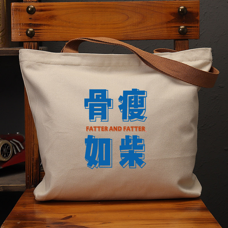 骨瘦如柴国潮帆布袋女上班通勤手提袋环保购物袋单肩大容量男包包 - 不二创意馆