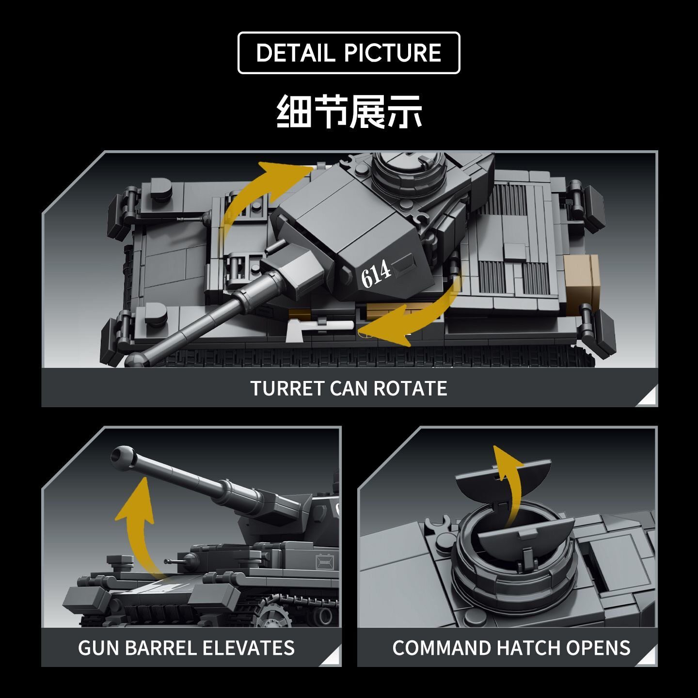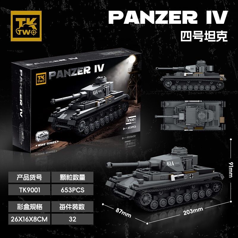 TK2德国二战军事系列9001履带式步兵四号坦克拼装diy积木玩具模型 - 探索星球玩具店
