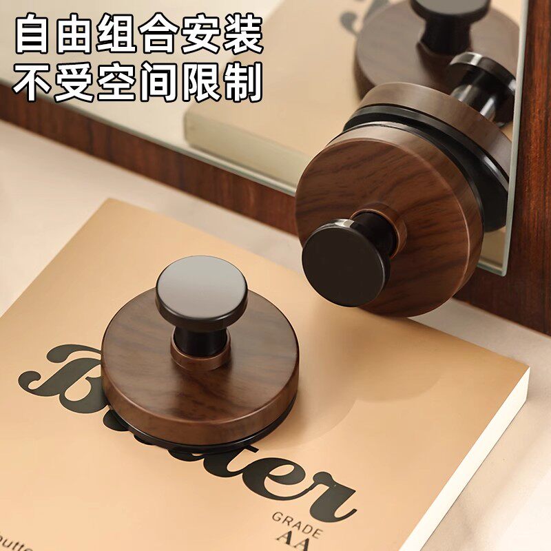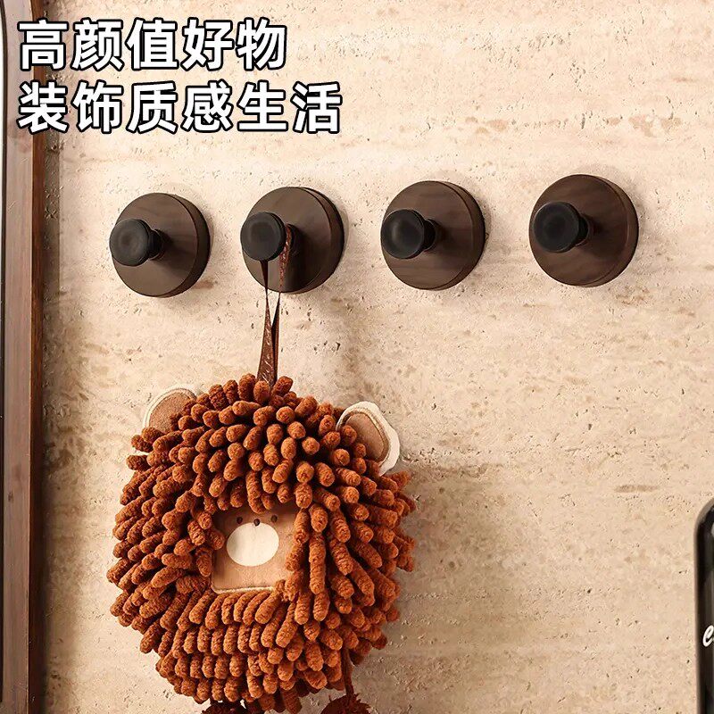 胡桃木纹吸盘旋钮挂钩强力承重粘胶挂钩卫生间厨房免打孔置物挂钩 - 还不晚 家居日用百货超市