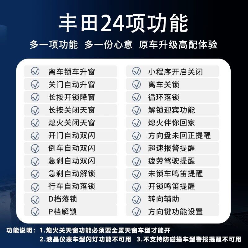 您的位置:光电产业平台  >  安防  >  丰田OBD离车自锁凯美瑞锋兰达威兰达卡罗拉荣放丰田一键自动升窗