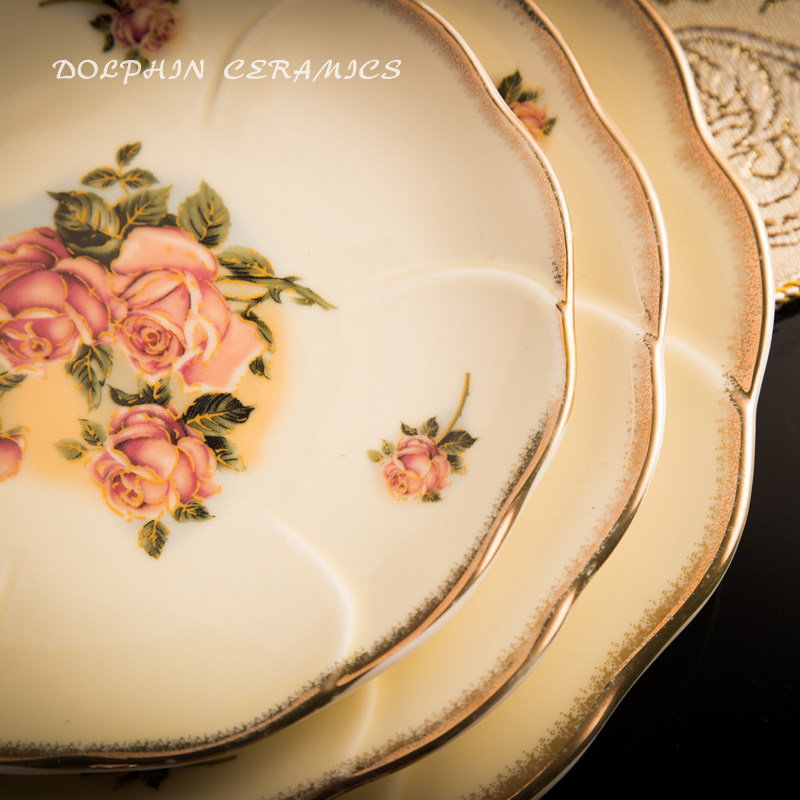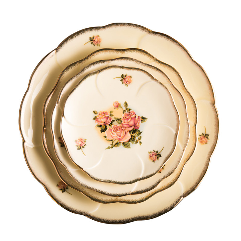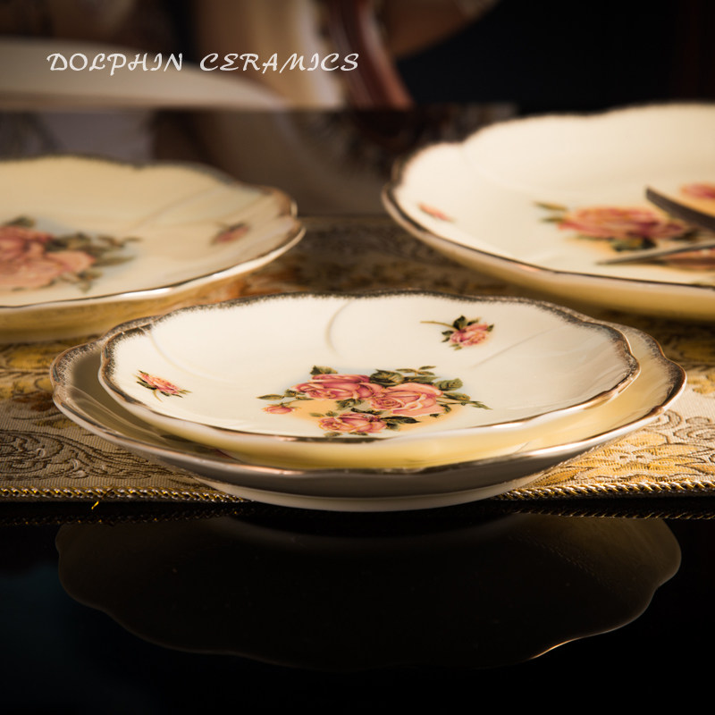 韩式金玫瑰陶瓷骨碟平盘荷口浅式盘圆盘寿司甜点盘菜碟镀金边盘子 - 盛创百货官营店12