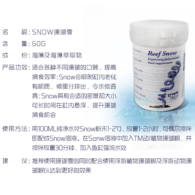 德国进口TM浮游动植物珊瑚粮液体珊瑚粮snow珊瑚雪荤素珊瑚粮饲料 - 静风听海水族