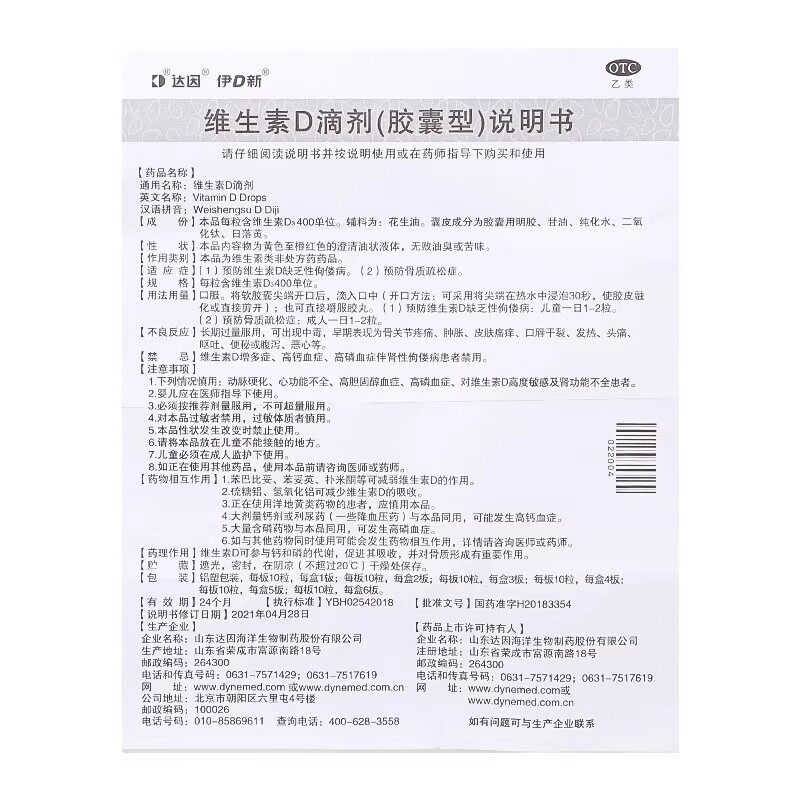 您的位置:光电产业平台  >   >  达因 维生素D滴剂400单位*30粒/盒预防和治疗维生素D缺乏症