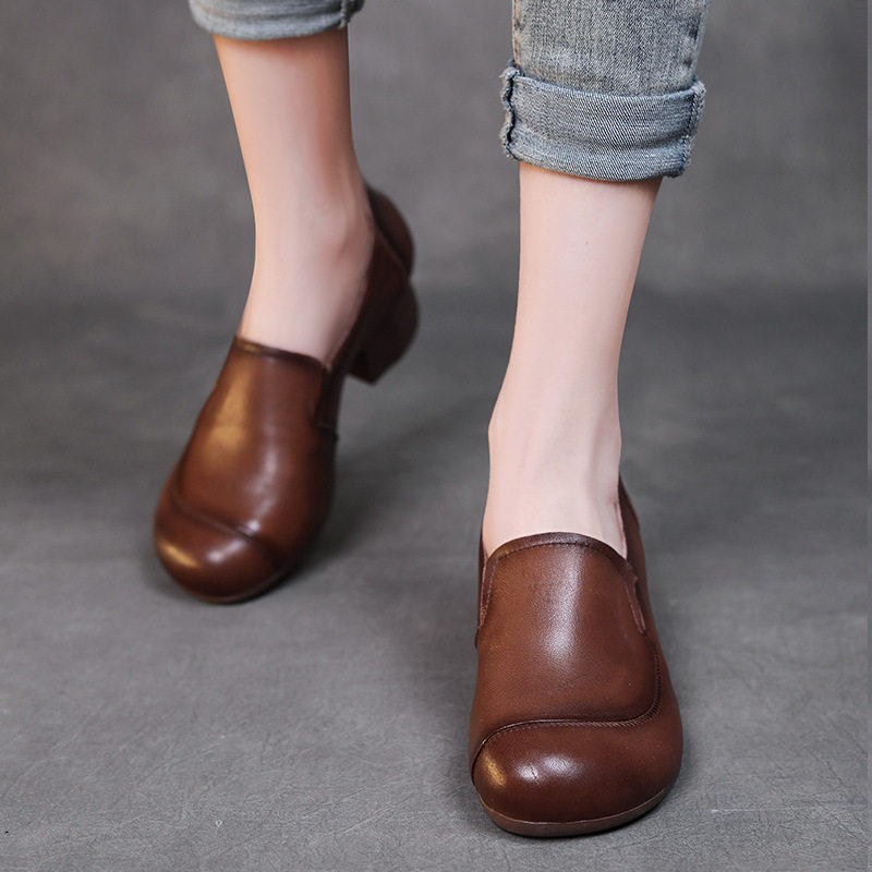 您的位置:光电产业平台  >  太阳能  >  057中粗跟真皮单鞋套脚民族风头层牛皮妈妈鞋圆头棕色工作鞋女春