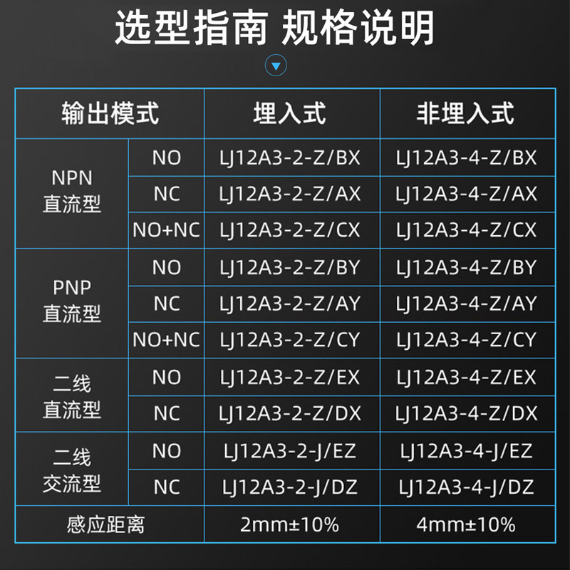 沪工接近开关LJ12A3-4-Z/BX三线NPN常开M12线切割传感器6-36V220V - 电器电子商城