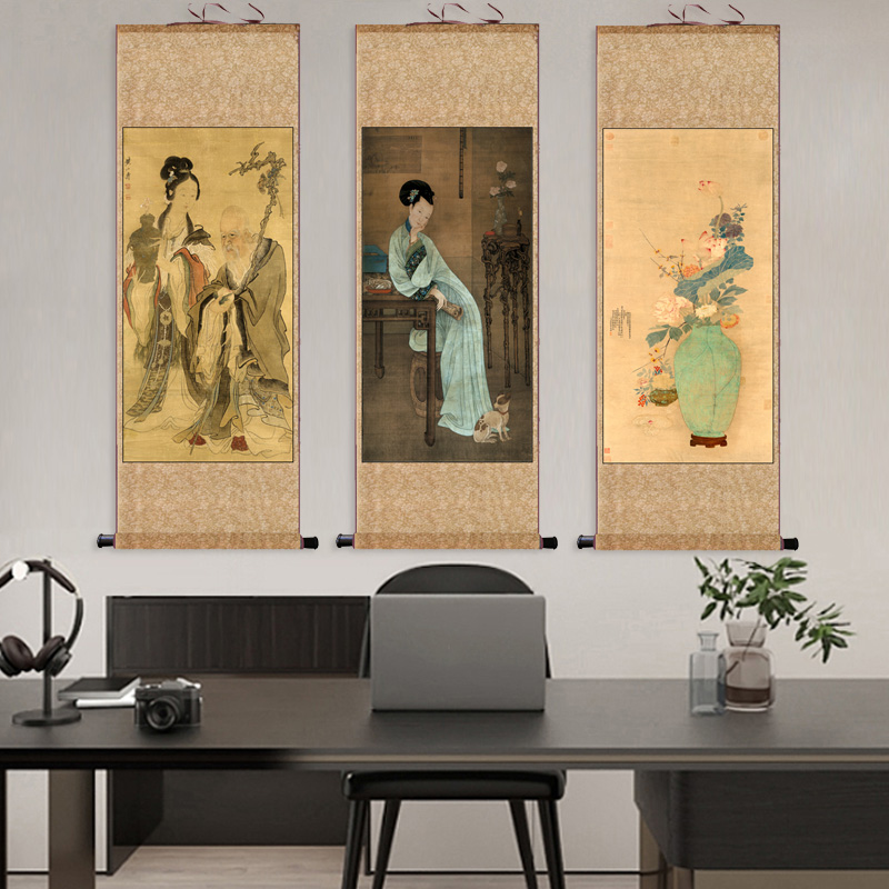 麻姑献寿白描新款图清代字画春山游骑图仿古名家人物画丝绸卷轴 - 杭州安泰工艺品有限公司