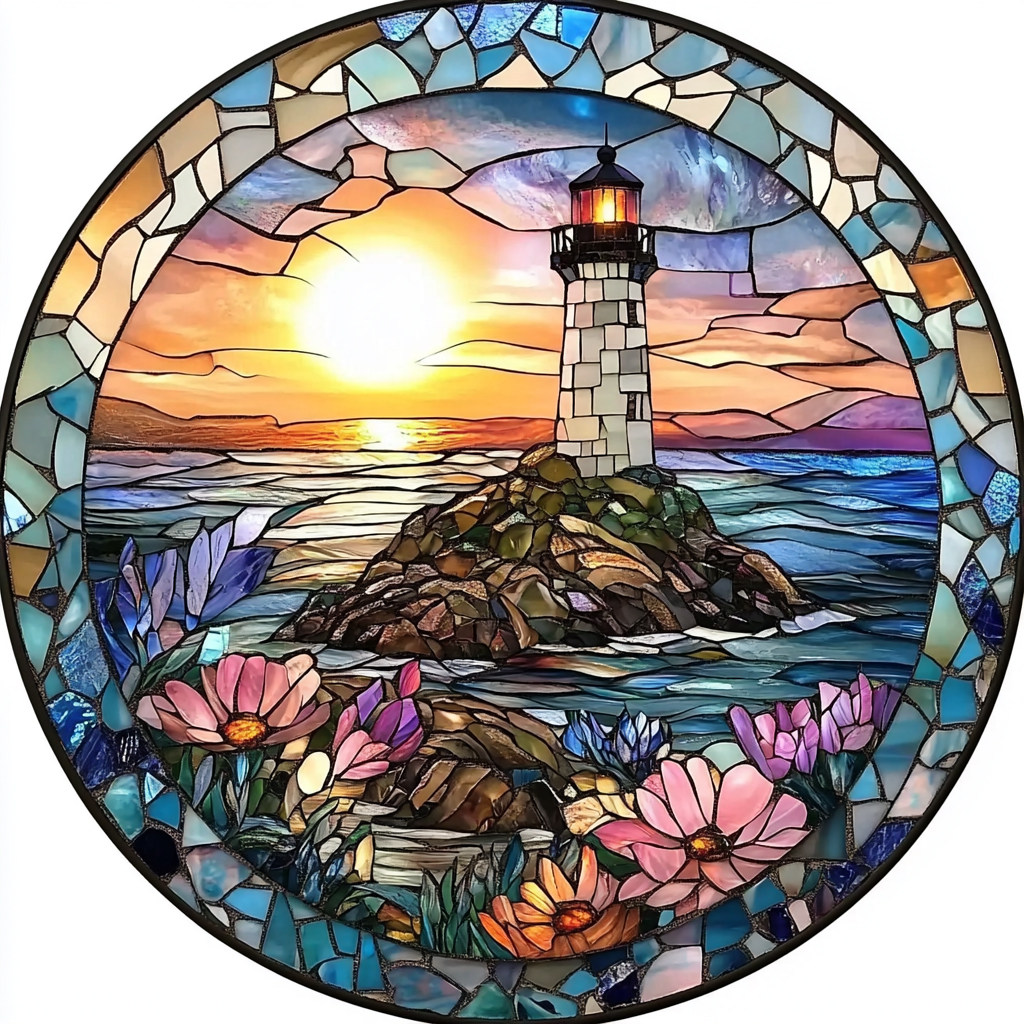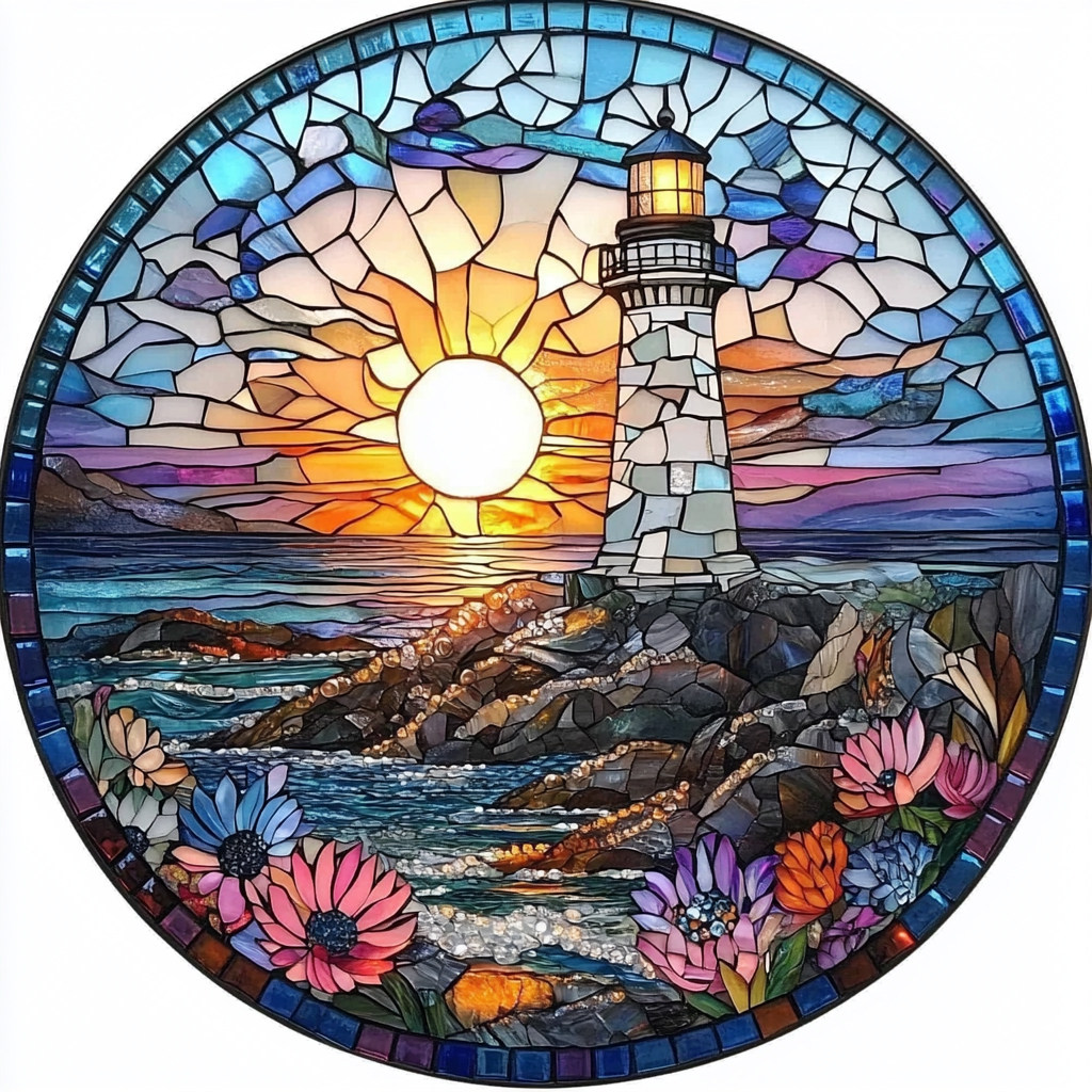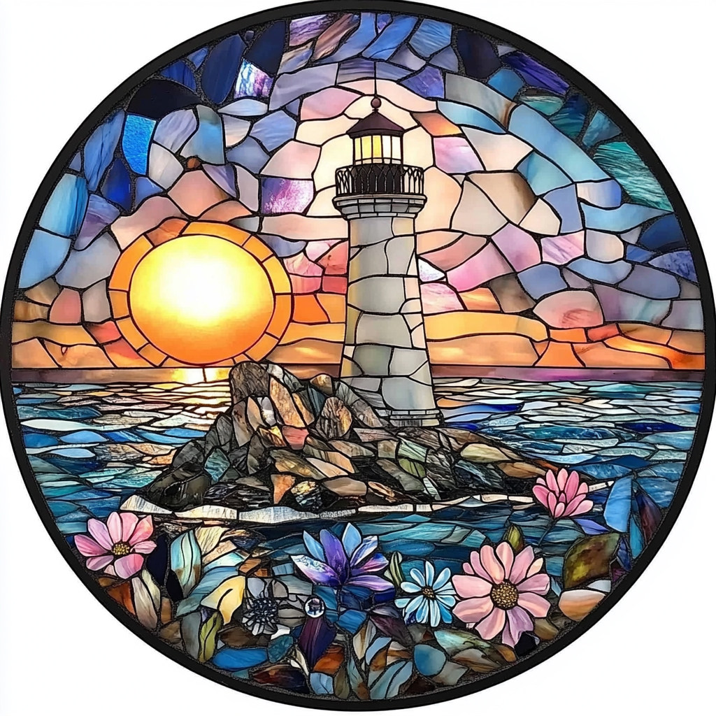 带框钻石画花草灯塔diy卡通马赛克拼图粘贴画学生手工 - 靓亮钻石画