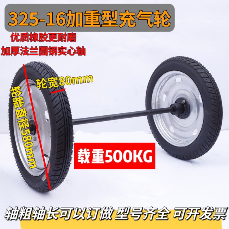 375-19充气马车轮子325-16板车轮胎工地推车轮胎24寸重型两轮连轴 - 弘强轮业