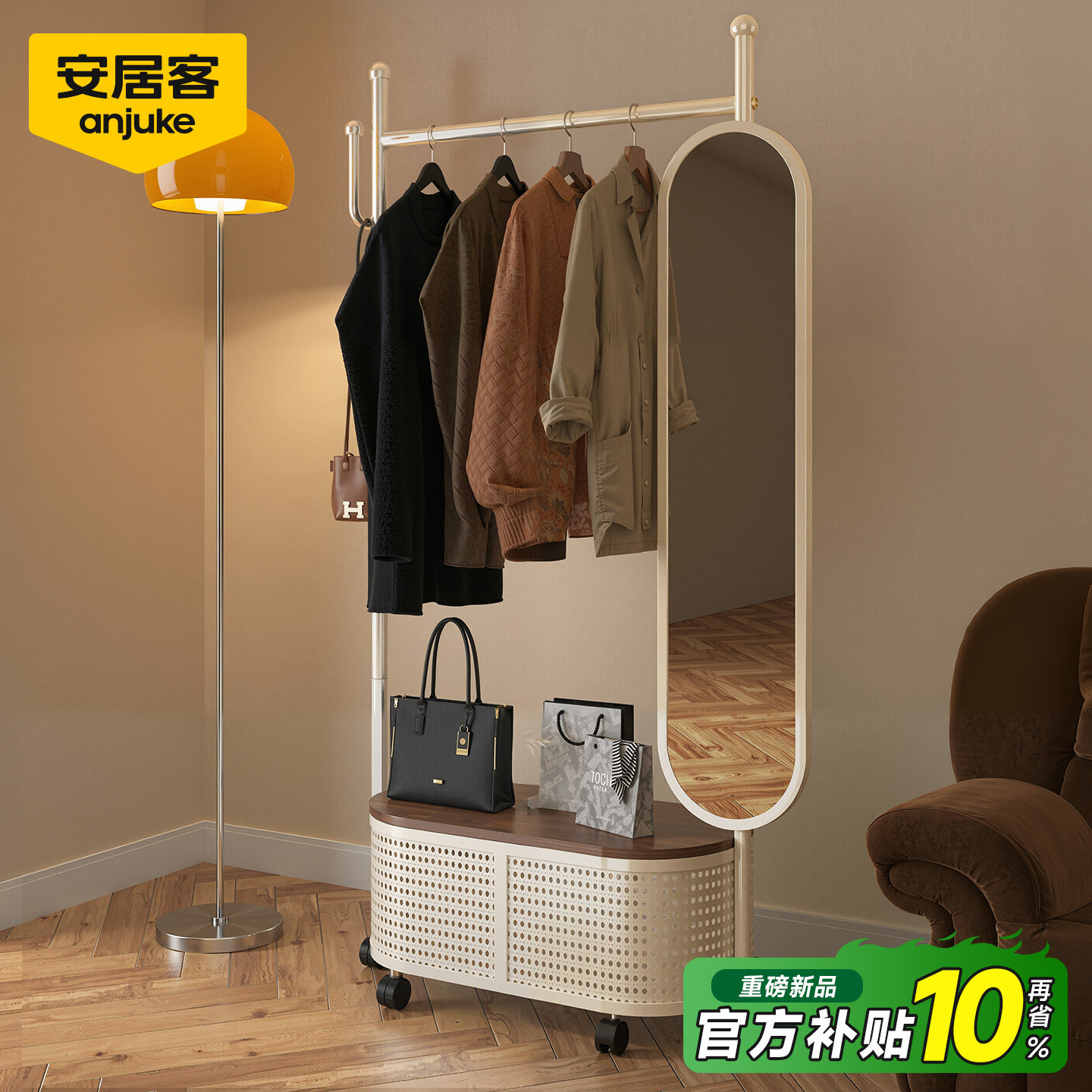安居客挂衣架卧室落地式全身镜一体衣帽架穿衣镜试衣镜子可移动架 - 安居客家具旗舰店