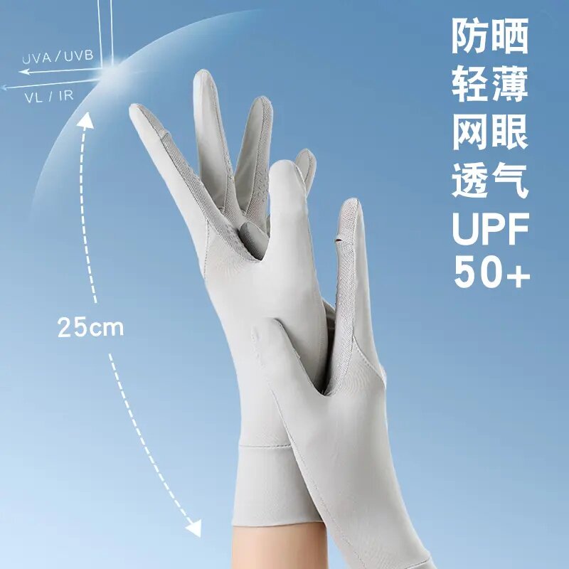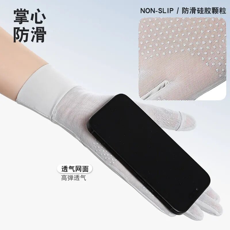 防晒手套女防紫外线夏季薄款露指触屏开车骑行电动车加长冰感透气 - 悦享百货小店