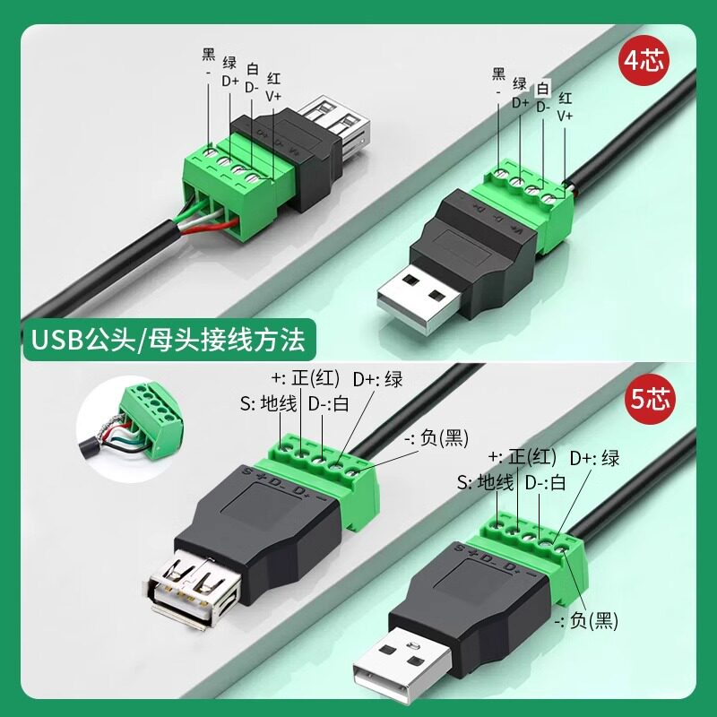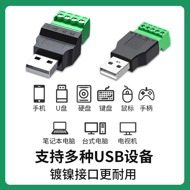 奎神电力 USB2.0免焊接端子usb公头母头电脑电视接线头USB插头 - 奎神电力旗舰店