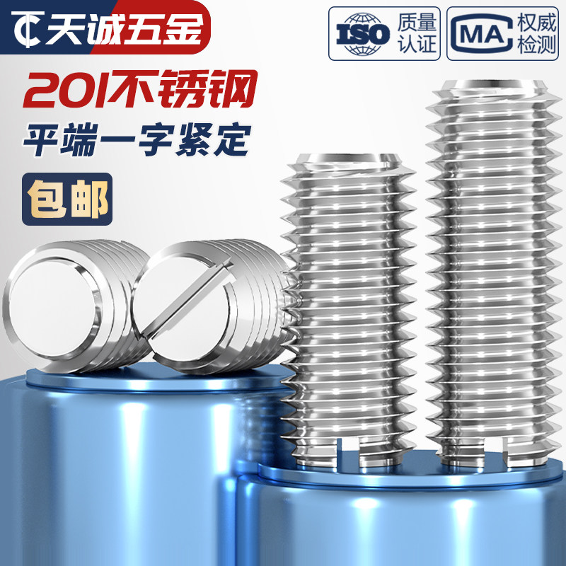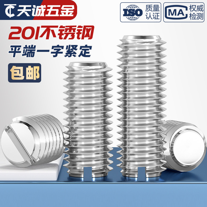 一字平端201不锈钢紧定螺钉开槽 无头螺丝 机米顶丝M3M4M5M6M8M10 - 天诚五金TC