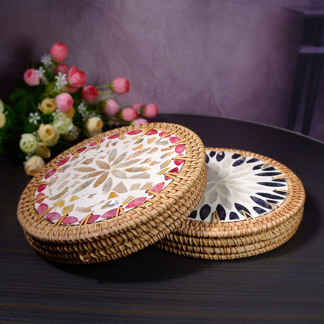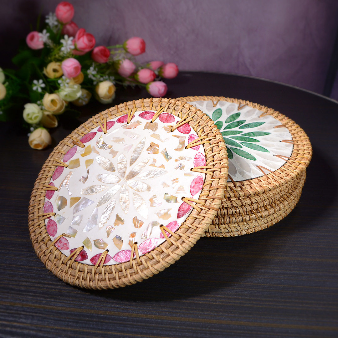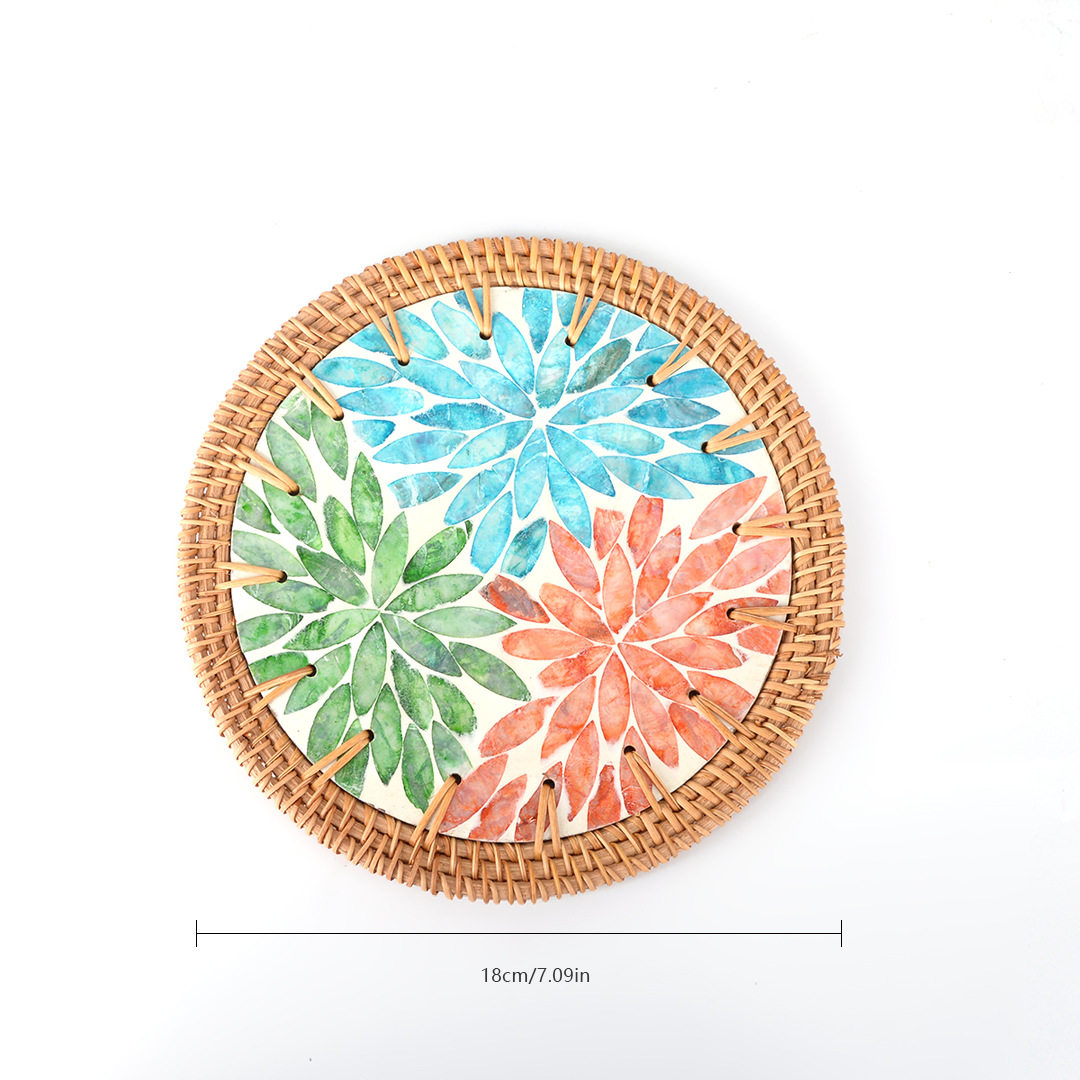 桌垫隔热垫耐高温手工编织彩贝壳杯垫家用创意天然贝母隔热垫子 - 巧编工艺品企业店