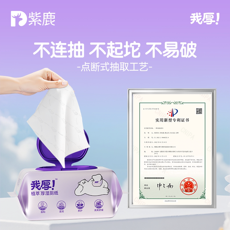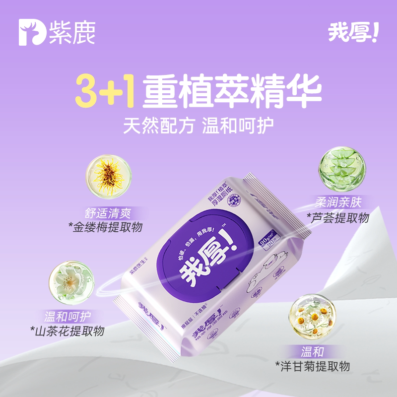 紫鹿我厚湿厕纸植萃款90克90抽女士正品家庭装男女通用可冲散清洁 - 紫鹿居家日用旗舰店