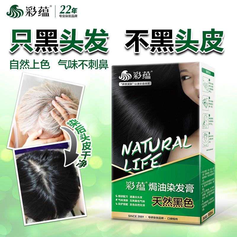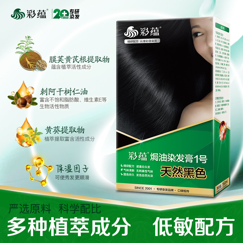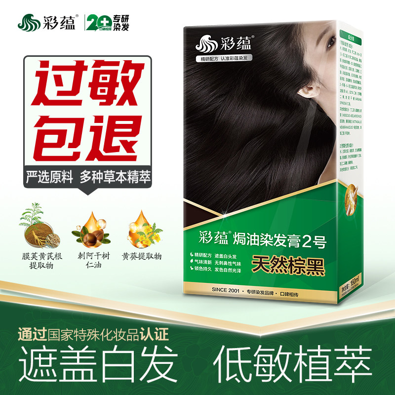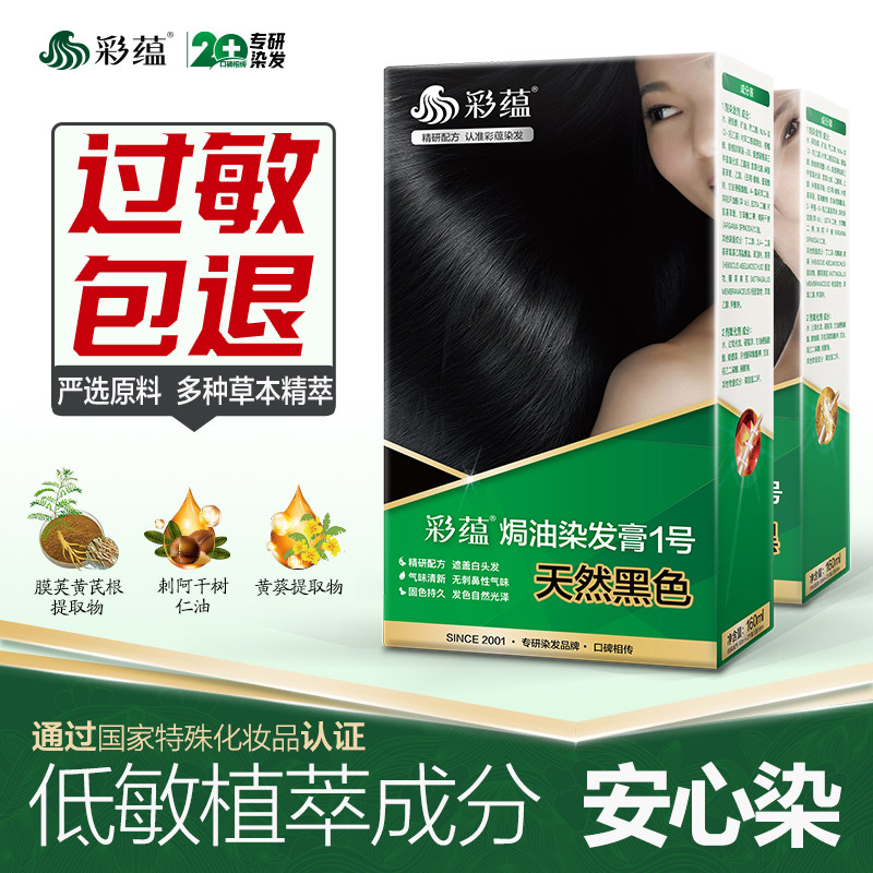 彩蕴遮盖白发纯黑色染发剂焗油染发膏霜低敏染色剂天然棕黑色正品 - 彩蕴染发官方企业店