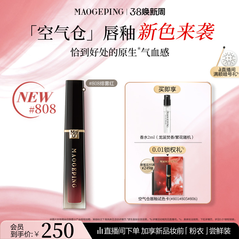 【王楚然同款】毛戈平空气仓唇釉808新色柔雾哑光保湿口红礼物 - MAOGEPING毛戈平官方旗舰店