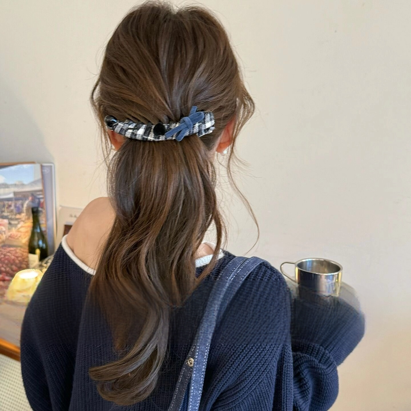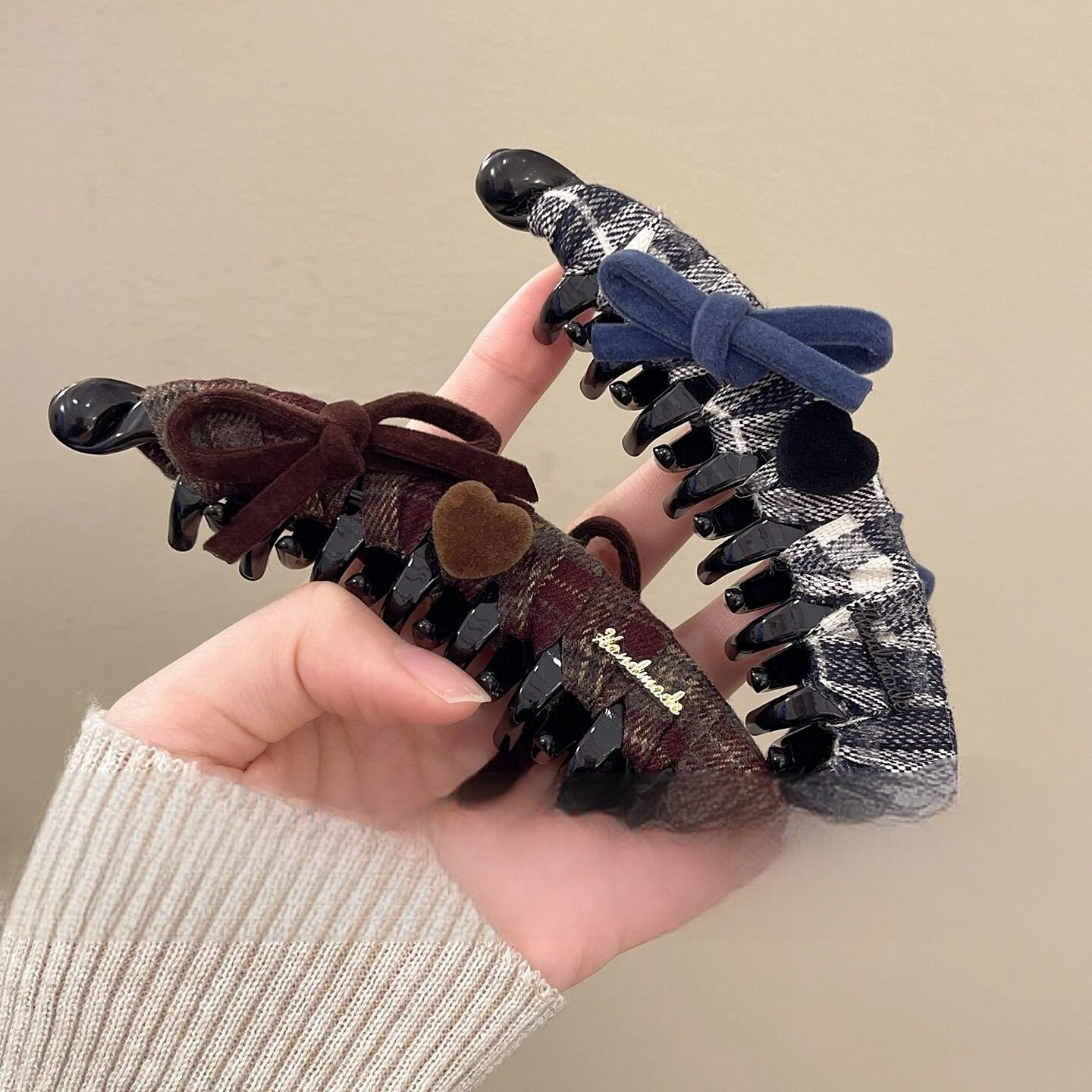 韩系学院纹格蝴蝶结发夹女款时尚高级感秋冬高马尾香蕉夹百搭发饰 - 花开遍野