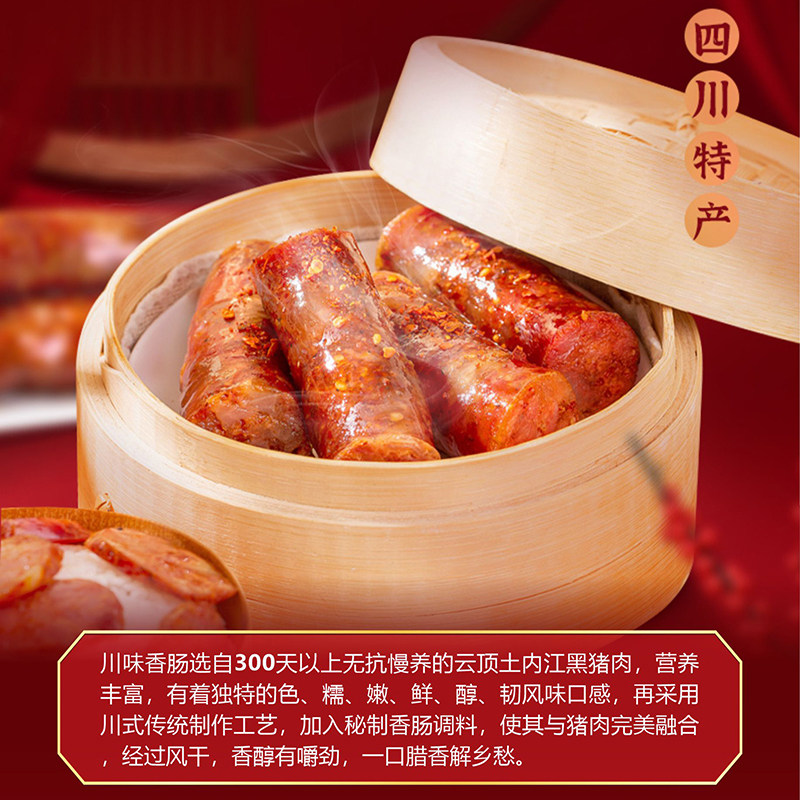 云顶土内江黑猪无抗黑猪肉纯肉风干川味麻辣香肠肉肠四川腊肉腊肠 - 云顶土生鲜企业店