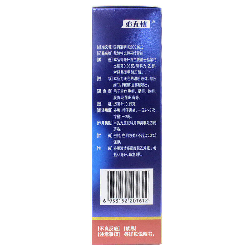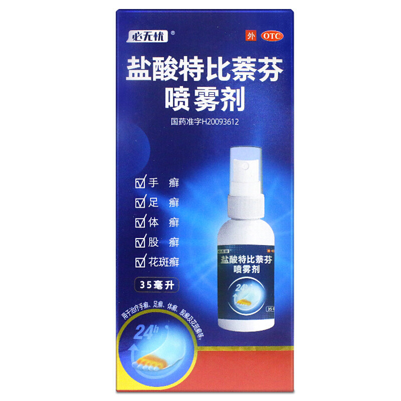 必无忧 盐酸特比萘芬喷雾剂35ml/瓶 凝胶手癣足癣体癣股癣花斑癣 - 粤百杏林大药房旗舰店