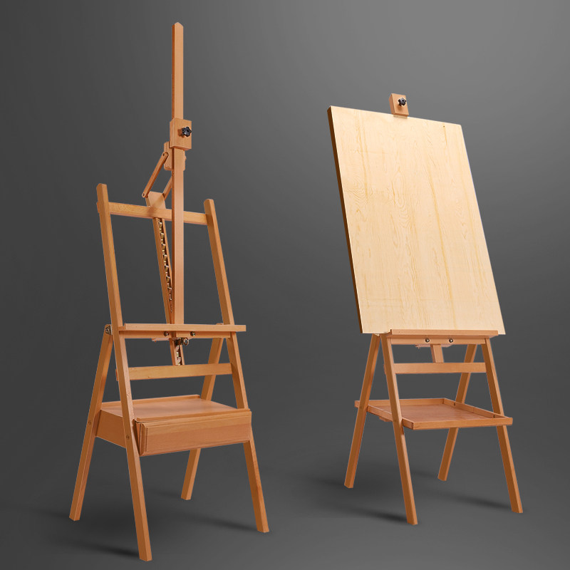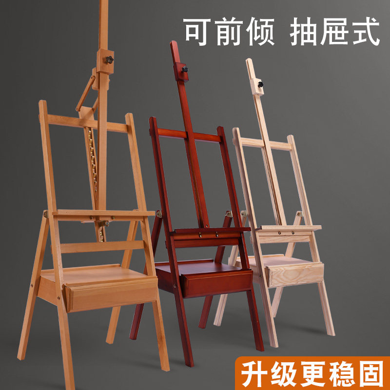 榉木质画板画架美术生专用写生可折叠便携初学者儿童4K2K美术油画画素描工具套装松木绘画架抽屉支架式展示架 - 巧圣旗舰店