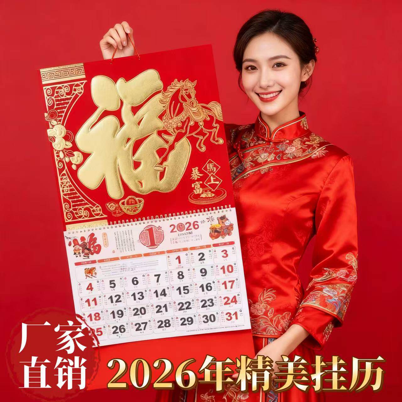 您的位置:光电产业平台  >  安防  >  挂历2026年新款福字手撕日历家用挂墙大尺寸高档中国风送礼墙挂大六开月历年历万年历金箔广告撕历黄历创意E1