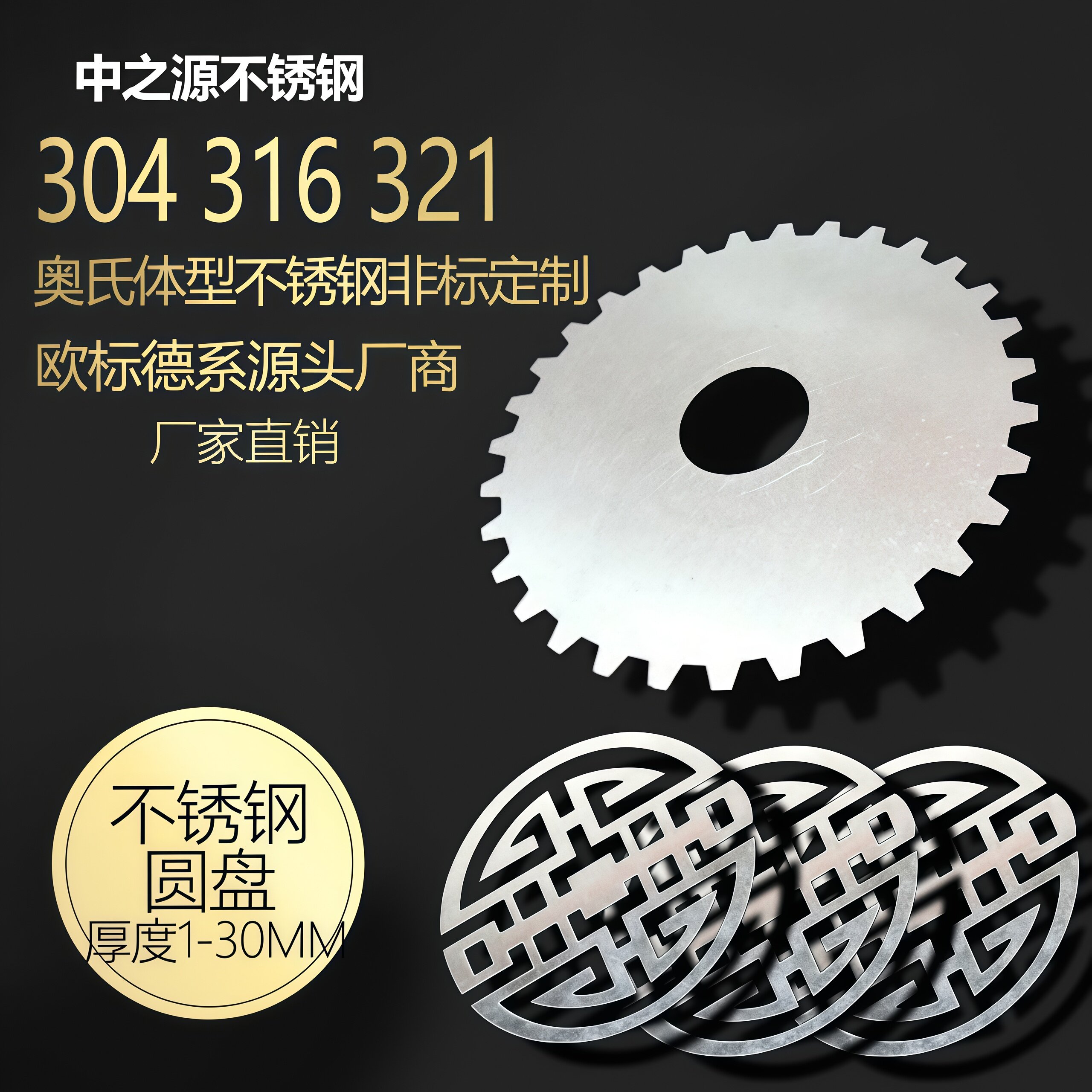 304不锈钢圆板圆片圆盘薄板垫片定做带孔不锈钢激光切割拉丝镜面 - 中之源不锈钢