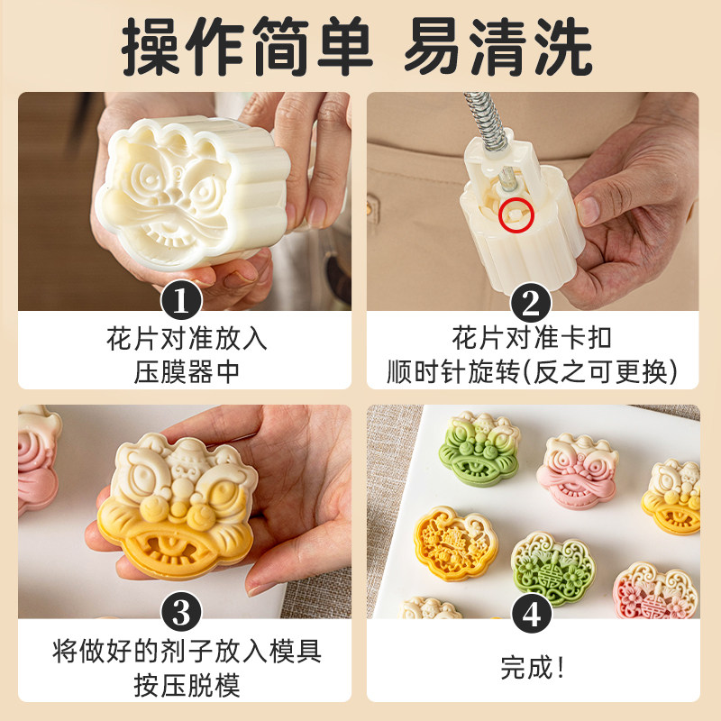 新款烘焙月饼模具食品级手按压家用冰皮桃山广式磨具中秋国风75克 - For love 烘焙包装