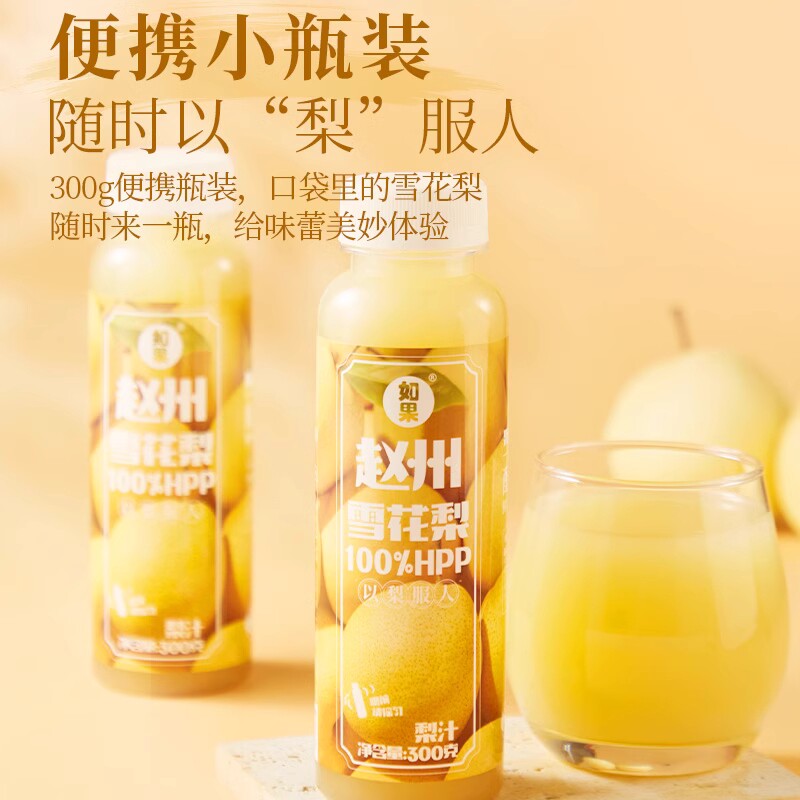 如果HPP赵州雪花梨纯果汁100%NFC鲜果现榨饮料0添加防腐剂300g/瓶 - 翔茵食品专营店