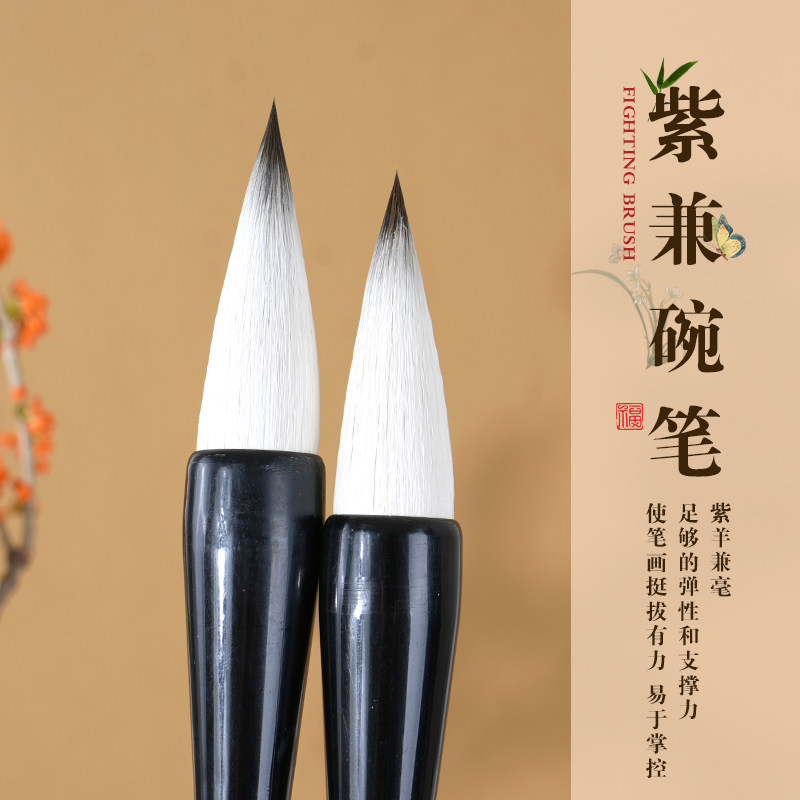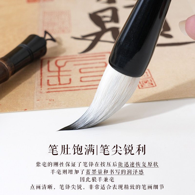 轩义堂中楷兼毫毛笔初中生专用尖毫中号书法初学者小学生三年级兼豪大号软笔行书隶书中号欧楷颜体专用毛笔 - 轩义堂旗舰店