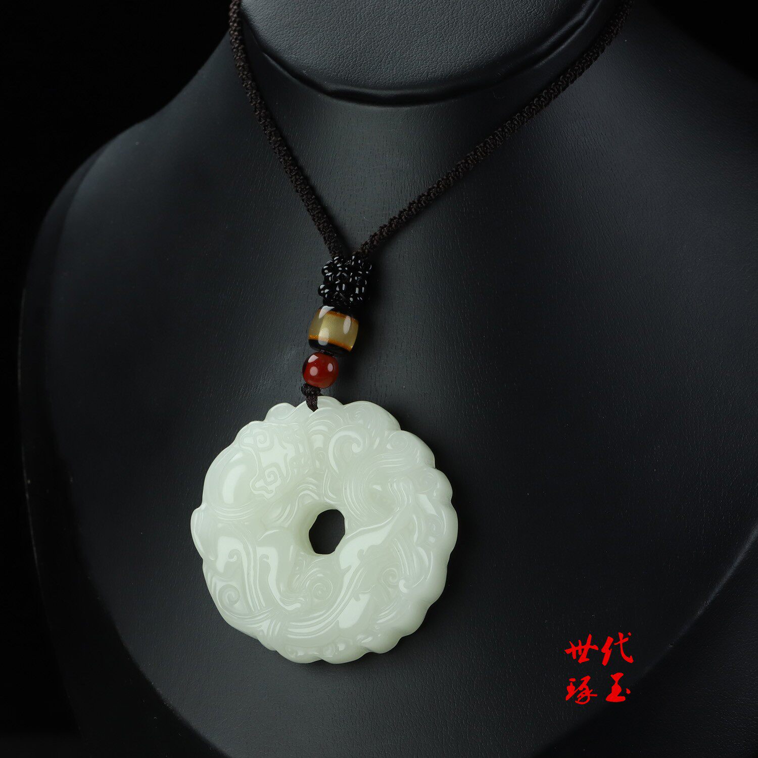 新疆和田玉白玉貔貅平安扣吊坠玉石双面雕刻招财草龙貔貅挂件玉佩 - 和田白玉厂家直销