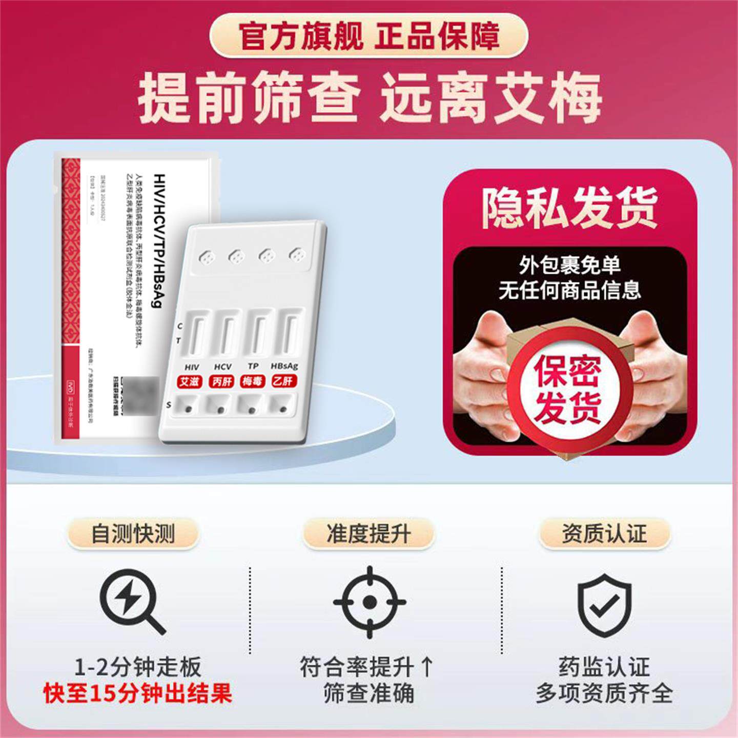 芙美清传染病四合一hiv艾滋病梅毒乙型丙型肝炎病毒4联检测试纸卡 - 洛敷美医药LUOFUMEI
