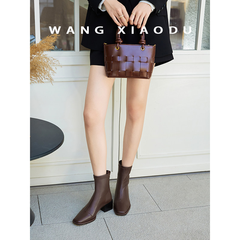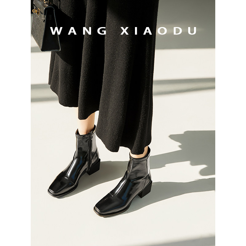 【王小毒】对的Duide●方头粗跟短靴女高级感新款漆皮瘦瘦时装靴 - 王小毒的小店