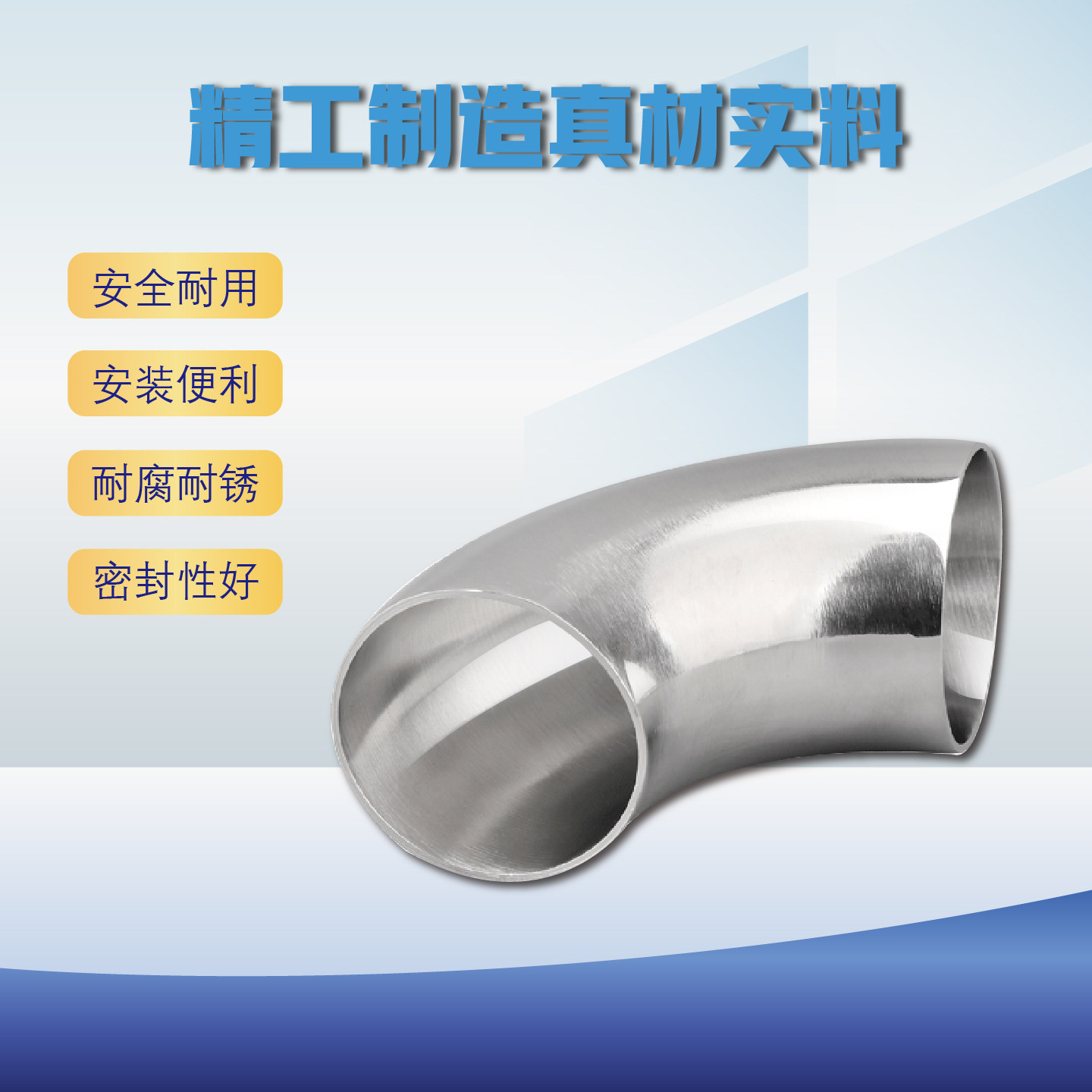 卫生级弯头304不锈钢90度外镜面内粗抛弯头冲压亮光焊接管件 316L - 铣力流体管阀