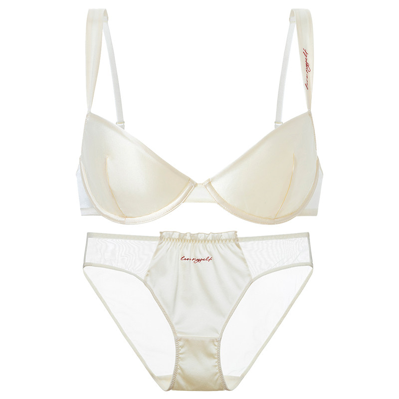 您的位置:光电产业平台  >  内衣  >  弗利少女真丝内衣女薄款软钢圈 3/4杯小胸性感文胸桑蚕丝胸罩套装
