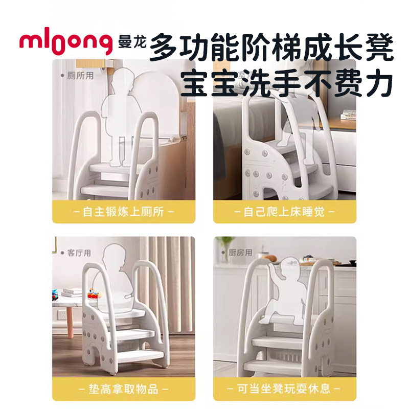 曼龙扶手凳儿童洗脸池梯子洗漱台阶梯踩脚凳楼梯宝宝洗手台阶凳 - 曼龙母婴品牌馆
