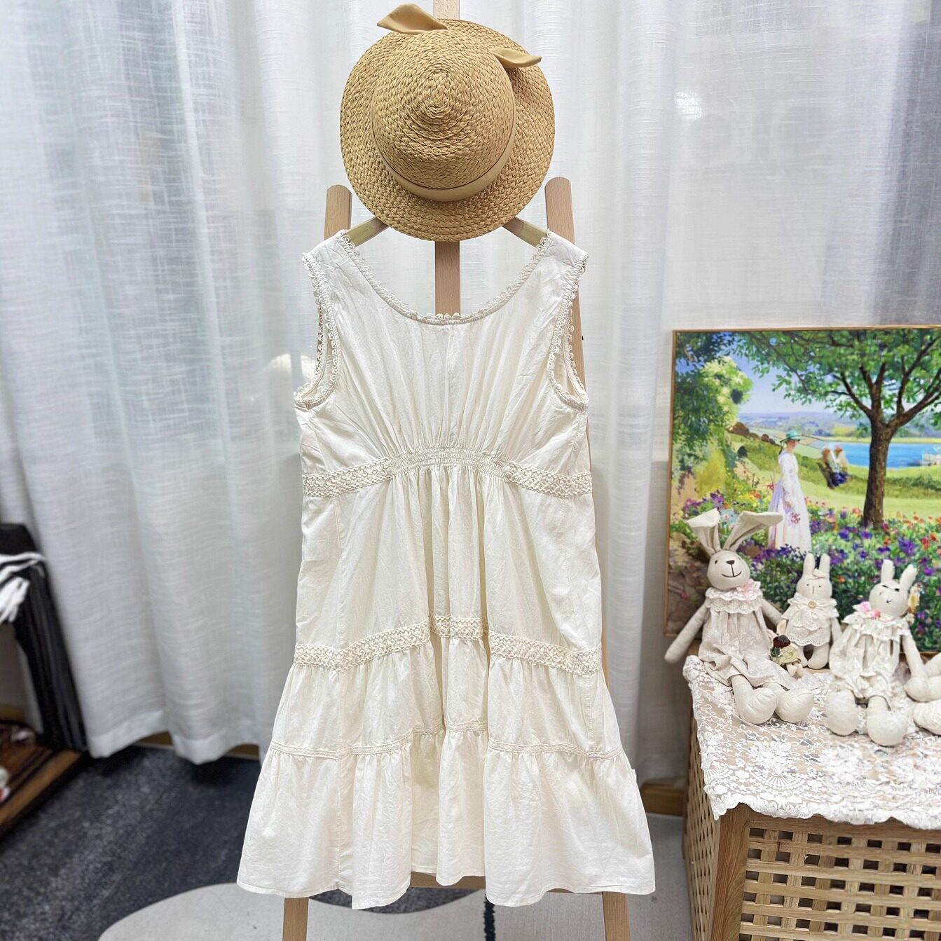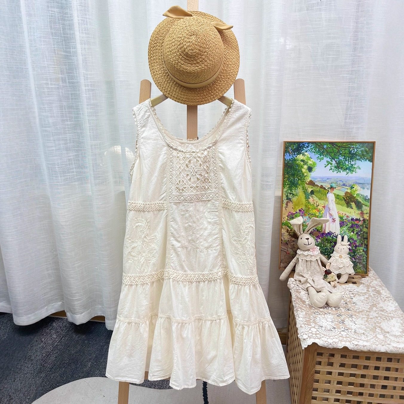 外DAN古着定制精美刺绣纯棉内衬圆领无袖背心裙拼接公主裙连衣裙 - 茉莉花开了 森系文艺女装