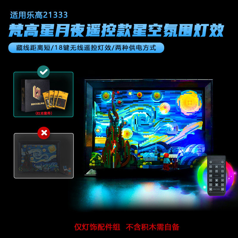BrickBling适用于乐高灯饰展示盒21333梵高星月夜星空LED灯光DIY - BrickBling旗舰店