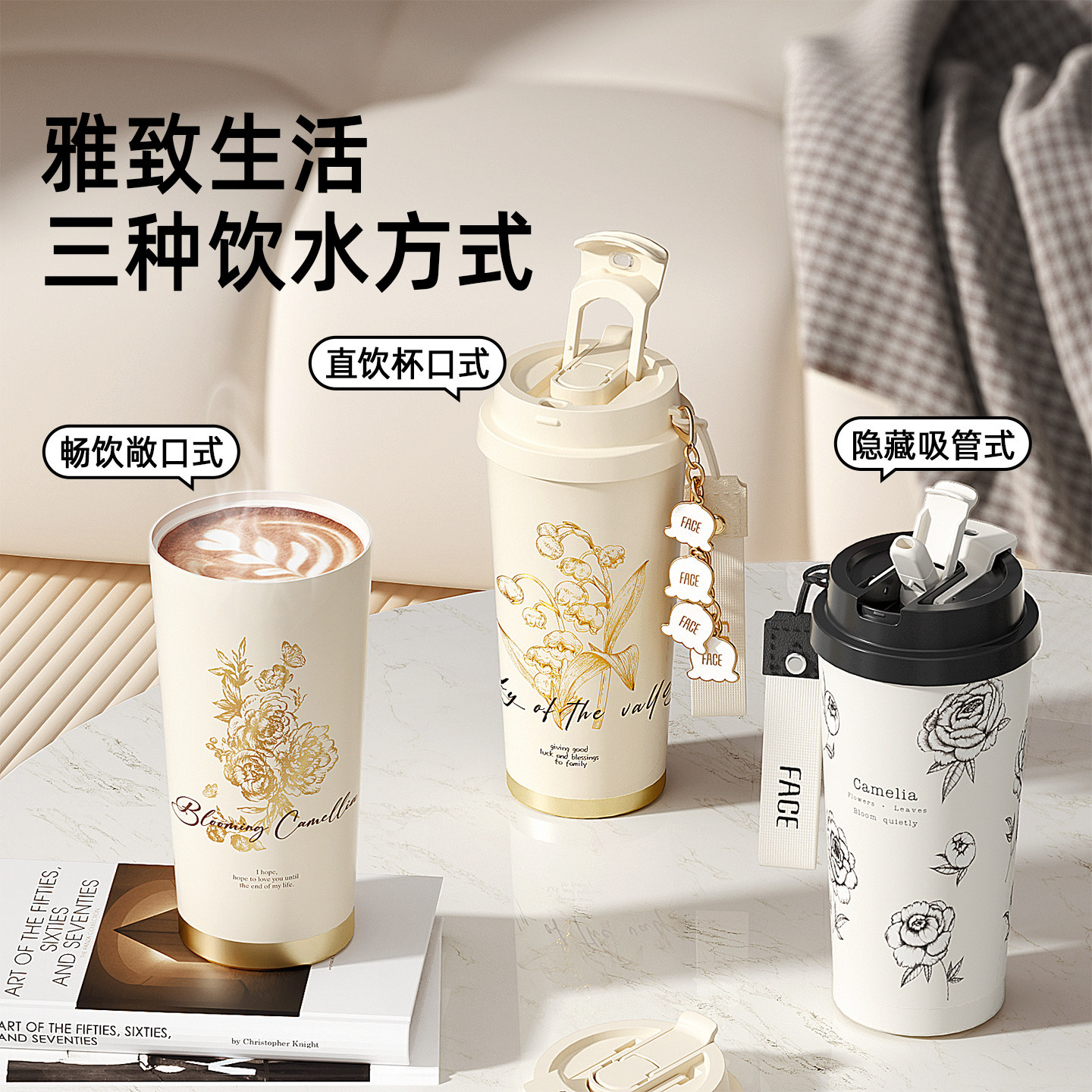 face铃兰保温杯礼盒女新款高颜值陶瓷覆层内胆咖啡水杯子生日礼物 - face旗舰店