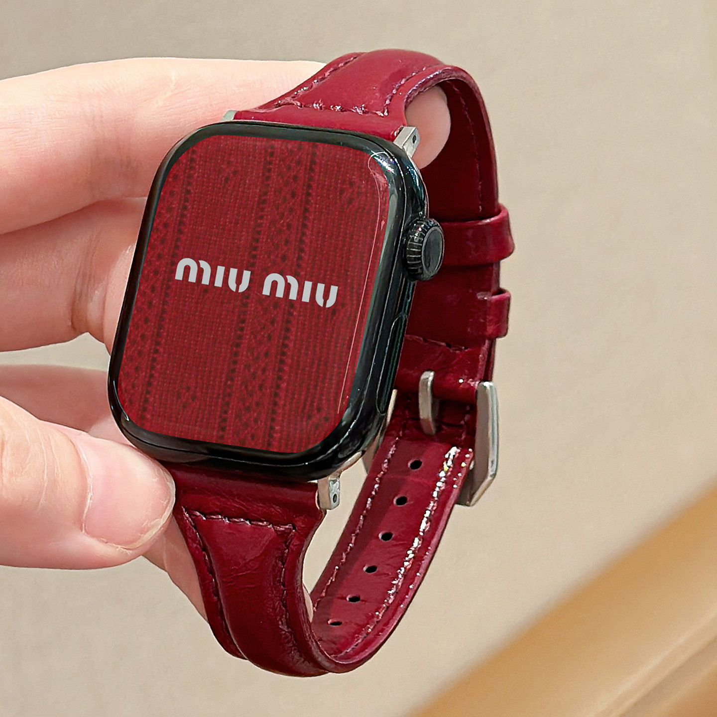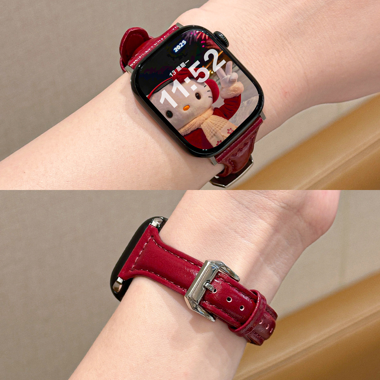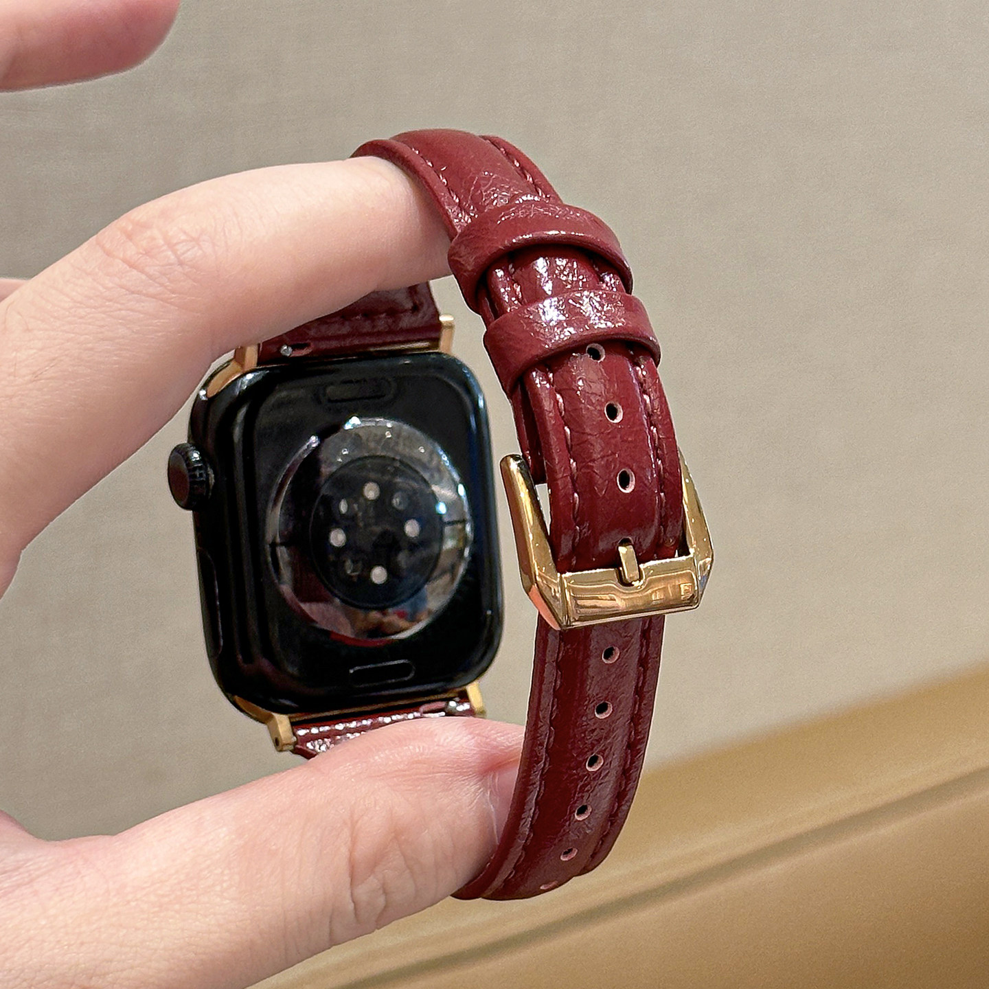 【珐琅红】小蛮腰新年红真皮表带适用applewatch秋冬复古纤细质感油蜡皮iwatchS11/10/9/8高级感女款SE皮表带 - probefit旗舰店