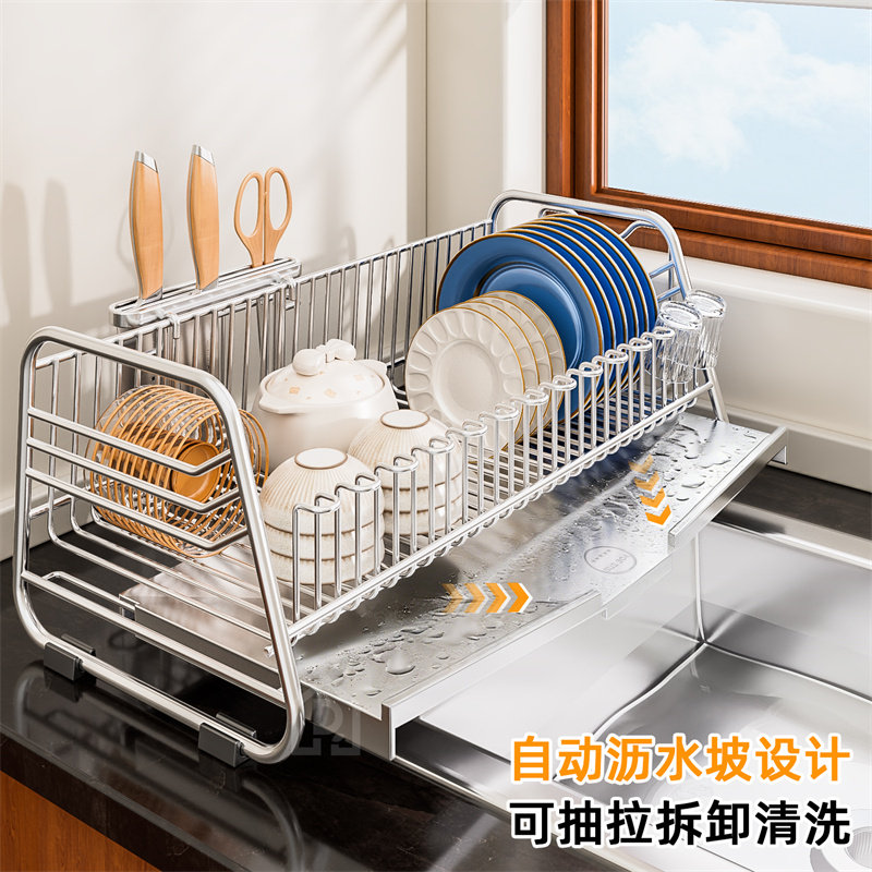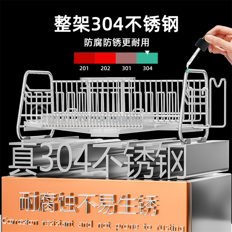 304不锈钢碗碟收纳架厨房碗筷置物架子水槽沥水碗盘架沥水架整装 - 昶百居优选