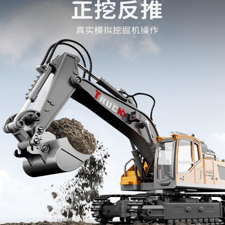 遥控挖掘机玩具车男孩儿童汽车挖土大号线电动仿真工程合金挖机 - 宁忠商贸城