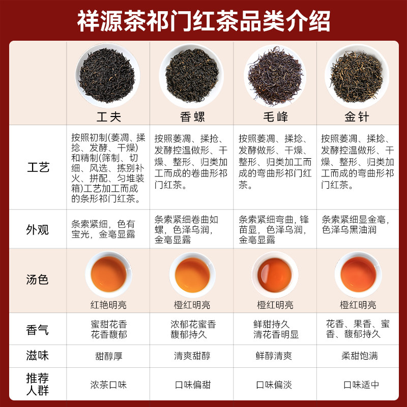 百补【祁红四宝】祥源茶祁门红茶特级工夫香螺毛峰金针组合64g/盒 - 祥源茶茶叶旗舰店