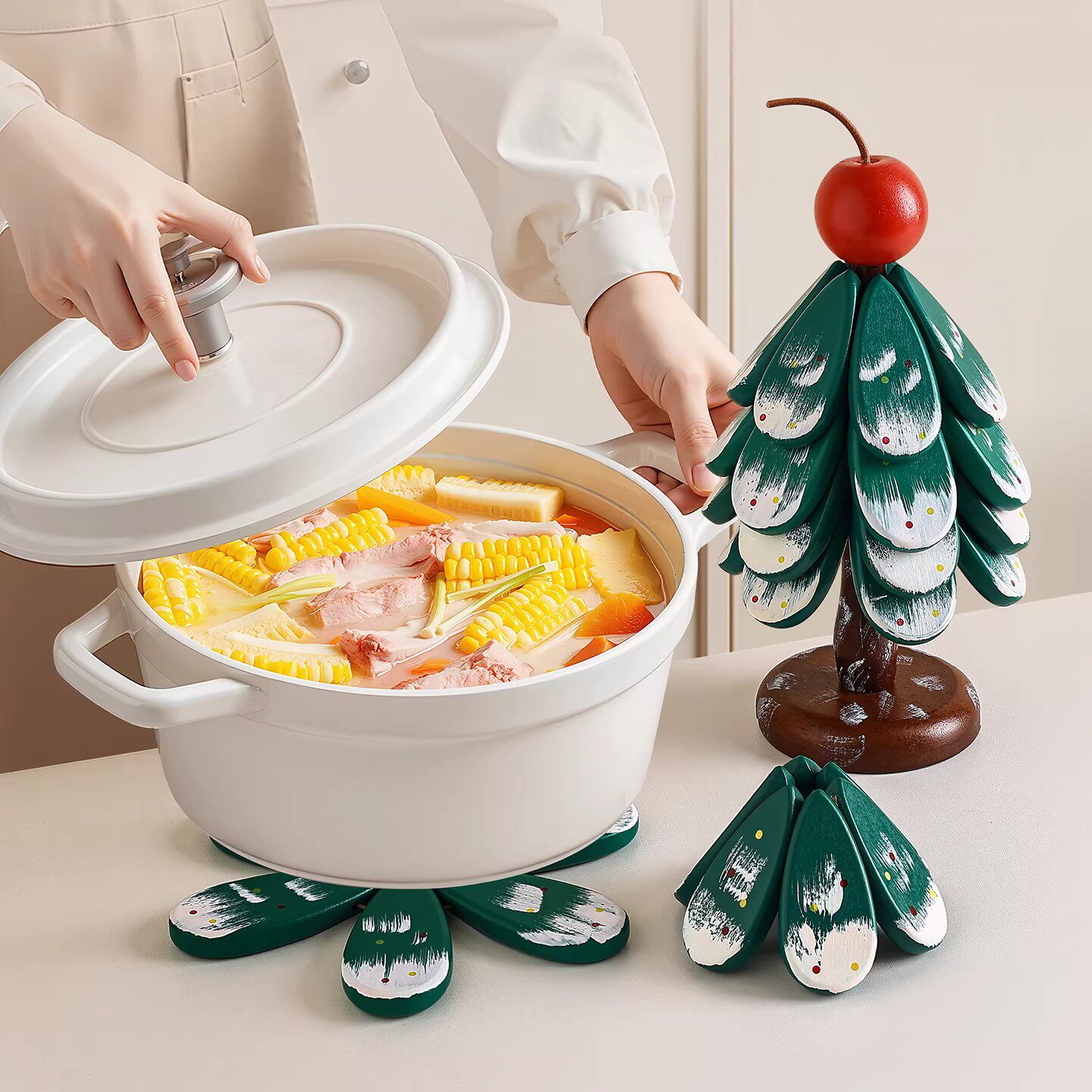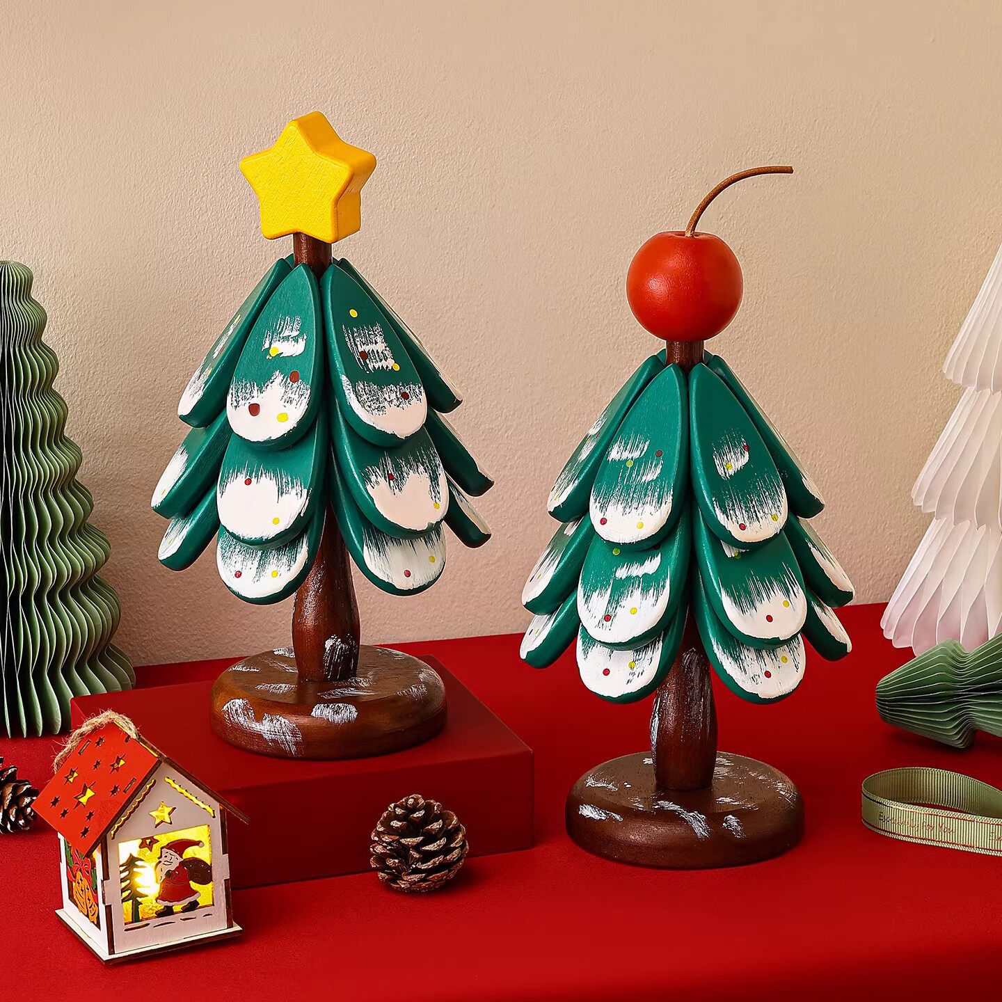 高级感圣诞树隔热垫餐桌摆件创意一棵树实木防烫锅垫折叠杯垫碗垫 - 顺鑫百货优选店