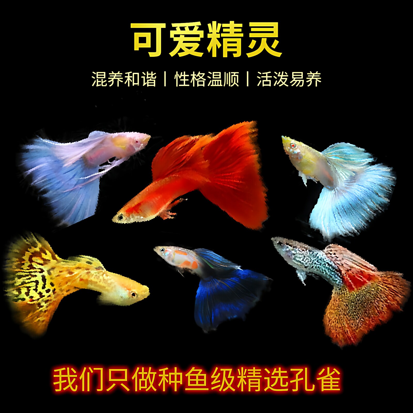 孔雀鱼活鱼观赏鱼淡水精品好耐活鱼热带蕾丝小型纯种大尾凤尾鱼苗 - 虎啸渔业