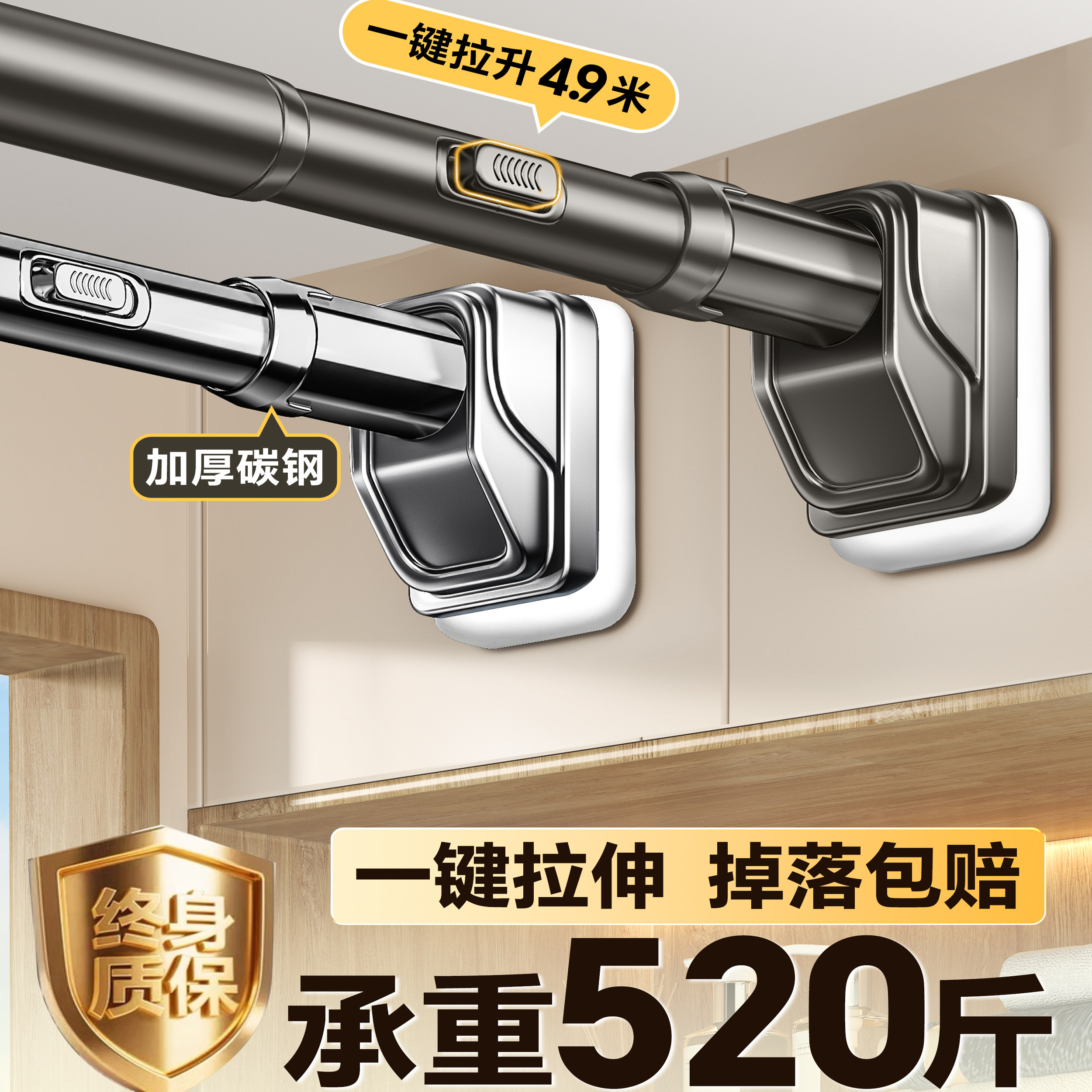 免打孔伸缩杆晾衣杆阳台固定不锈钢晾衣架窗帘衣柜卫生间墙上撑杆 - 睦歌家居旗舰店