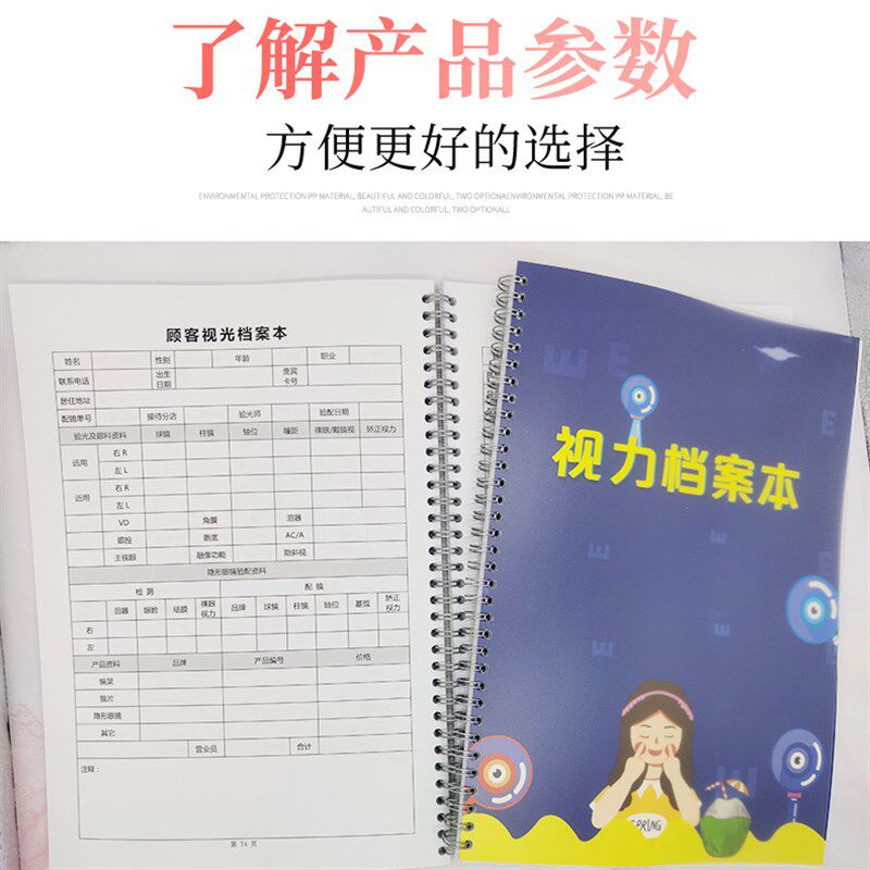 眼镜店验光配镜登记本视力检查养护疗程档案表近视顾客信息册定制 - 天河文具店