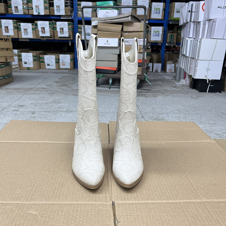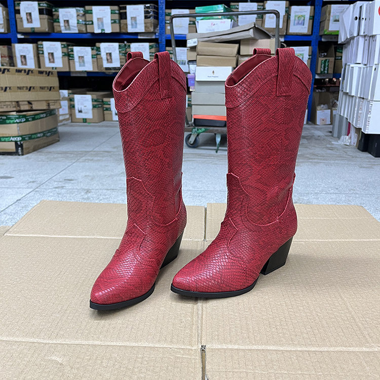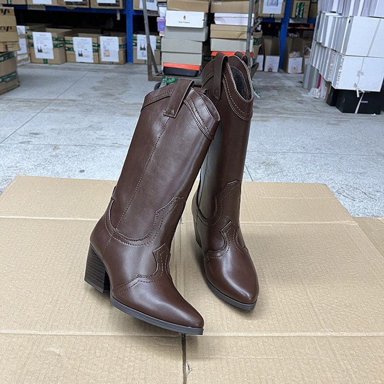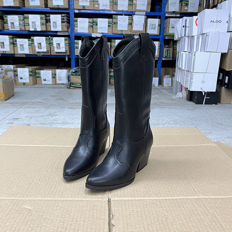 外贸原单时尚欧美春秋款户外套筒西部牛仔尖头粗跟中筒靴骑士靴 - 慧慧欧美外贸女鞋